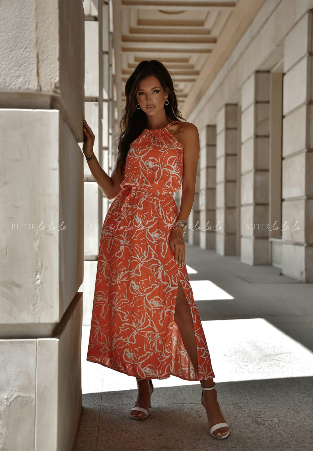 Sukienka maxi pomarańczowa w print Julas