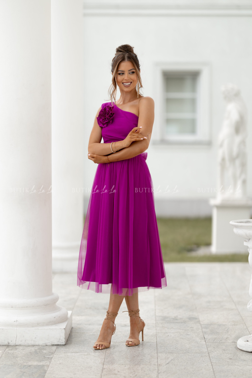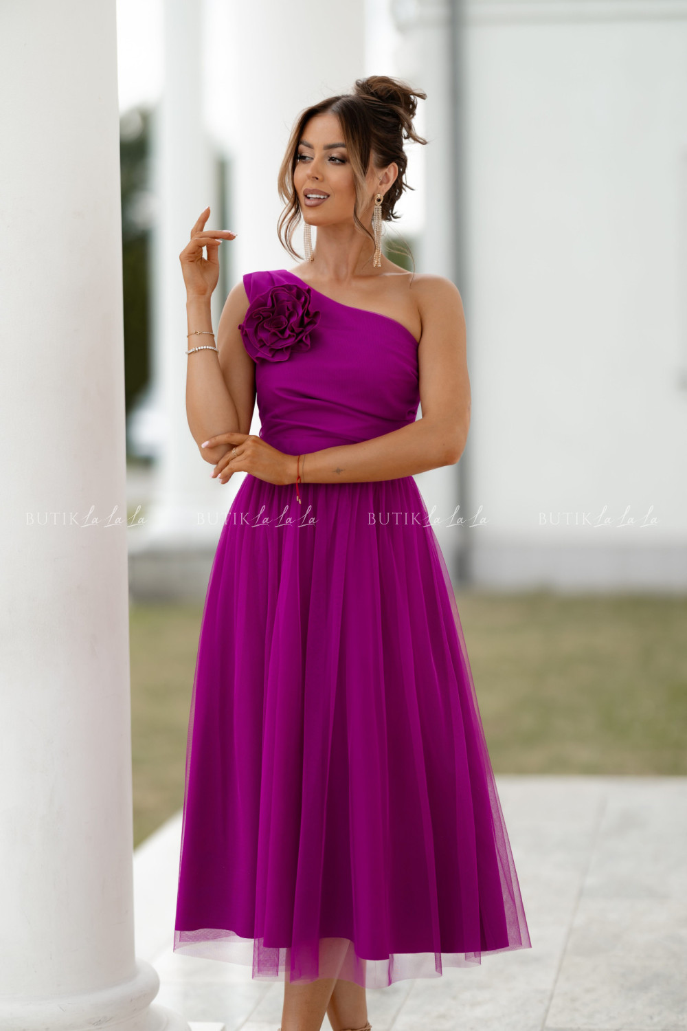 Sukienka z ozdobną różą fuksja Arisson
