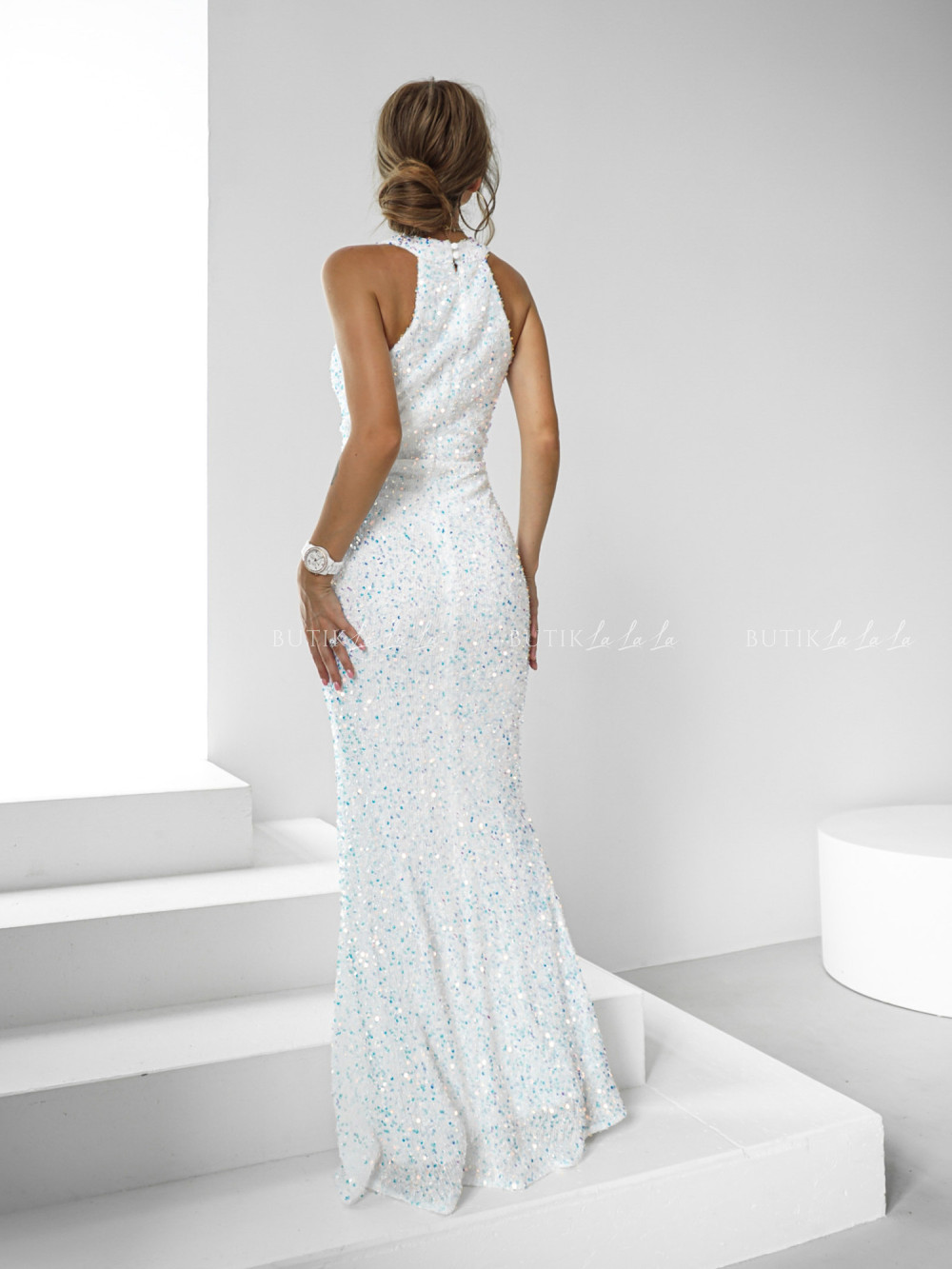 Sukienka maxi cekinowa biała Magnolie