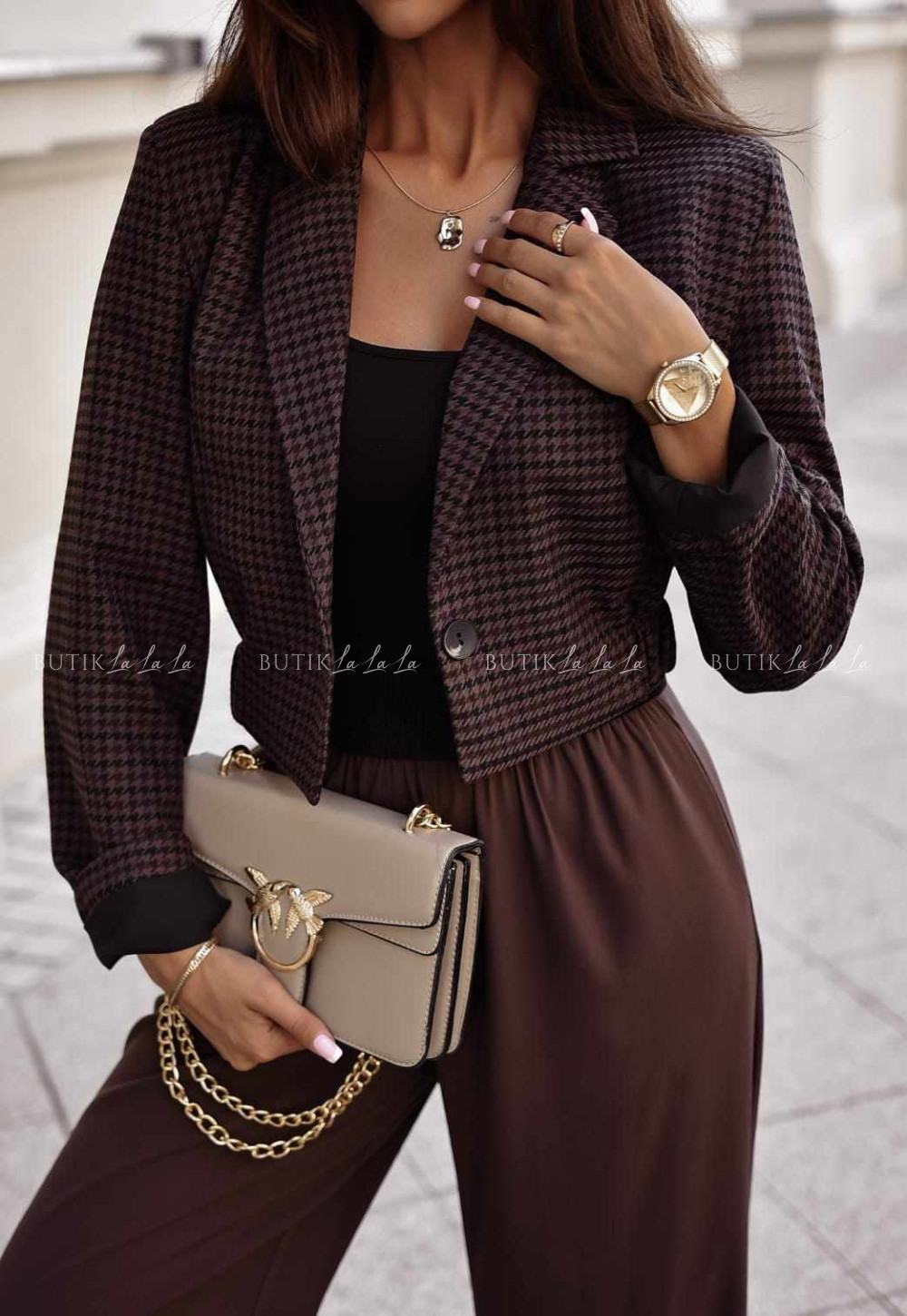 Marynarka o krótszym kroju brązowa w pepitkę Caprie