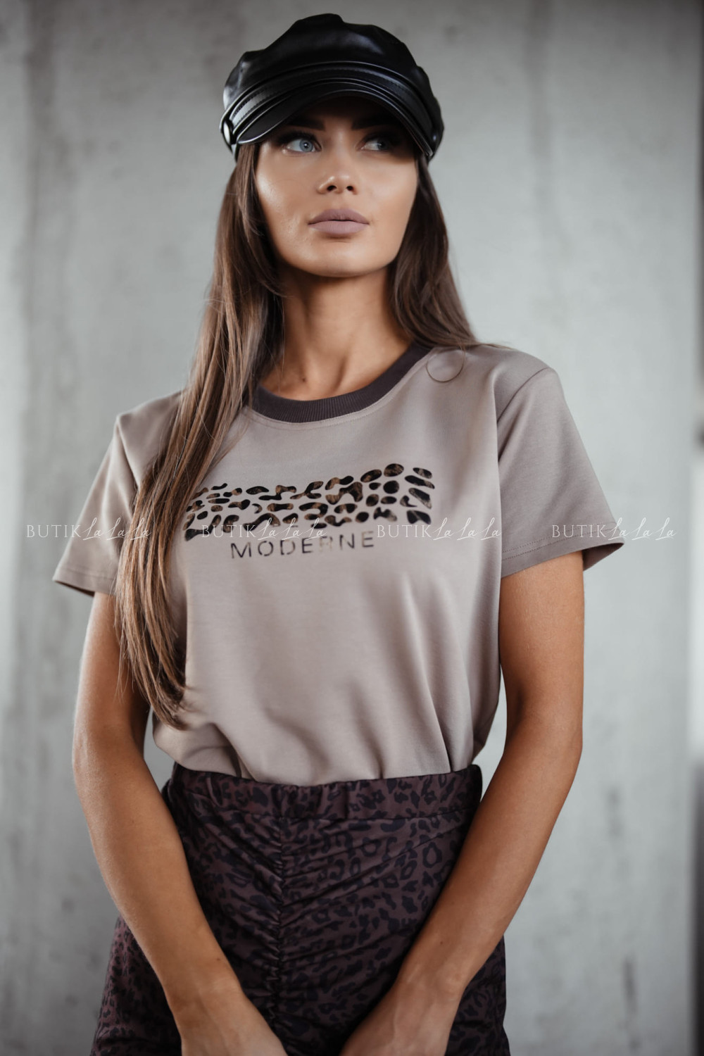 Bluzka z nadrukiem kawowa Moderne