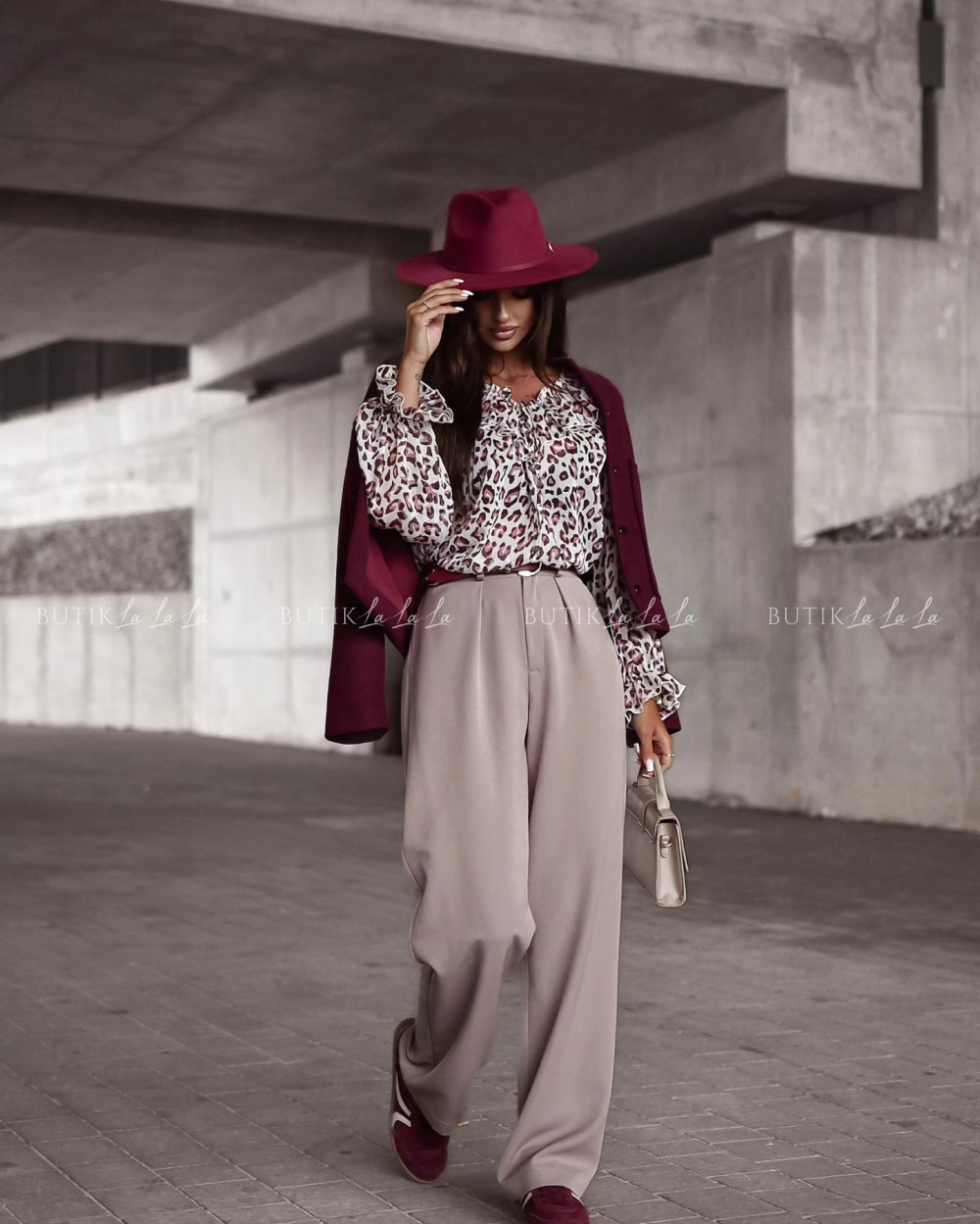 Modelka ma 170cm wzrostu, prezentuje rozmiar S/36