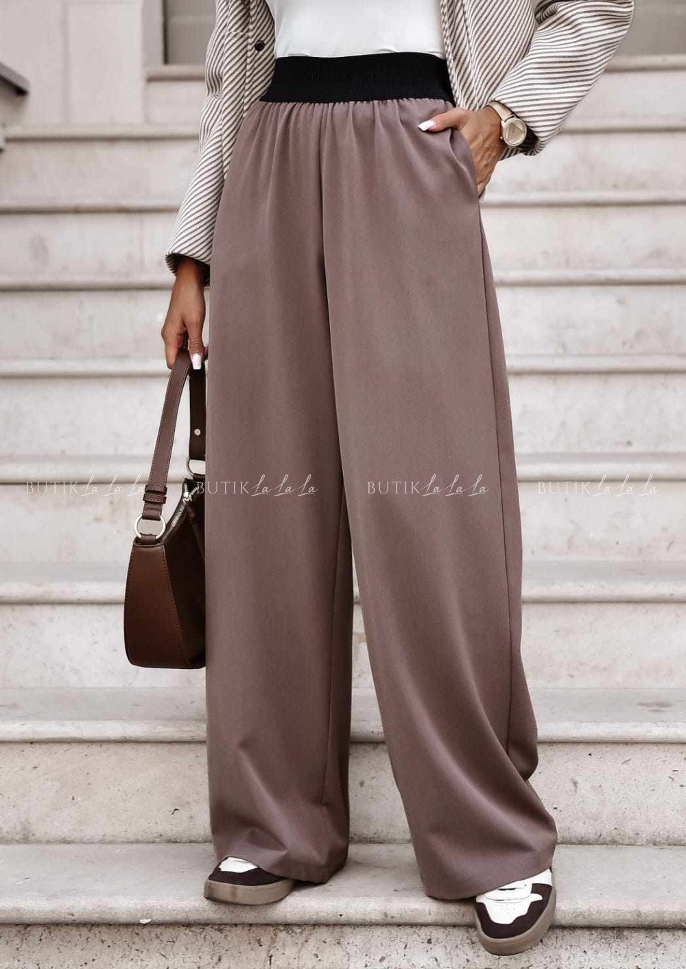 Spodnie z szerszą nogawką brązowe Ganos