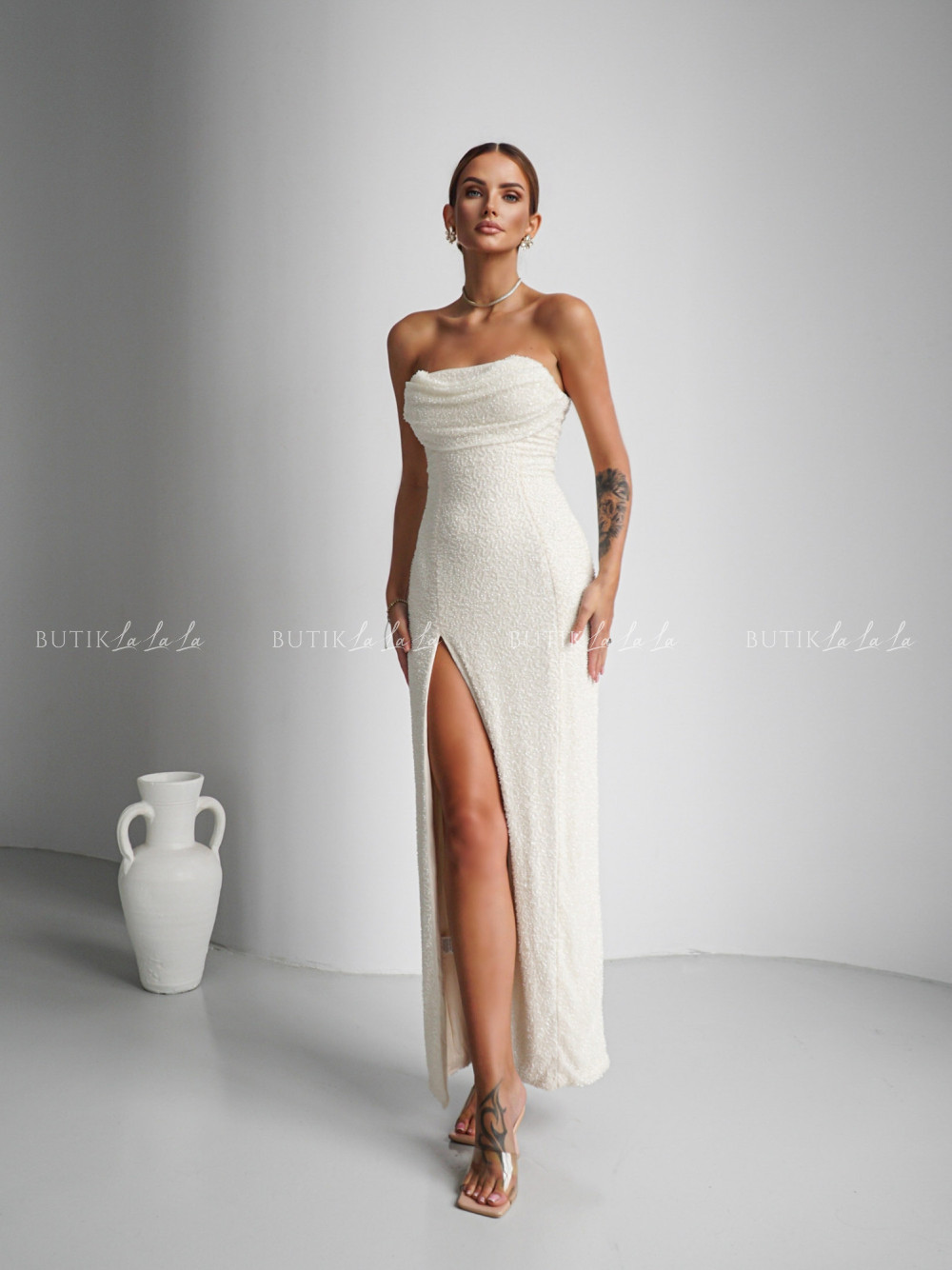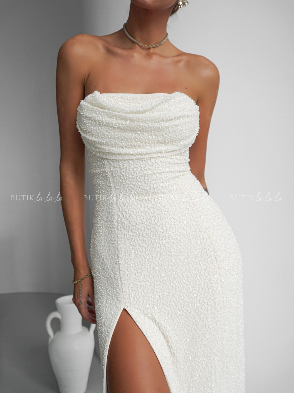 Sukienka maxi zdobiona koralikami ecru Chicago