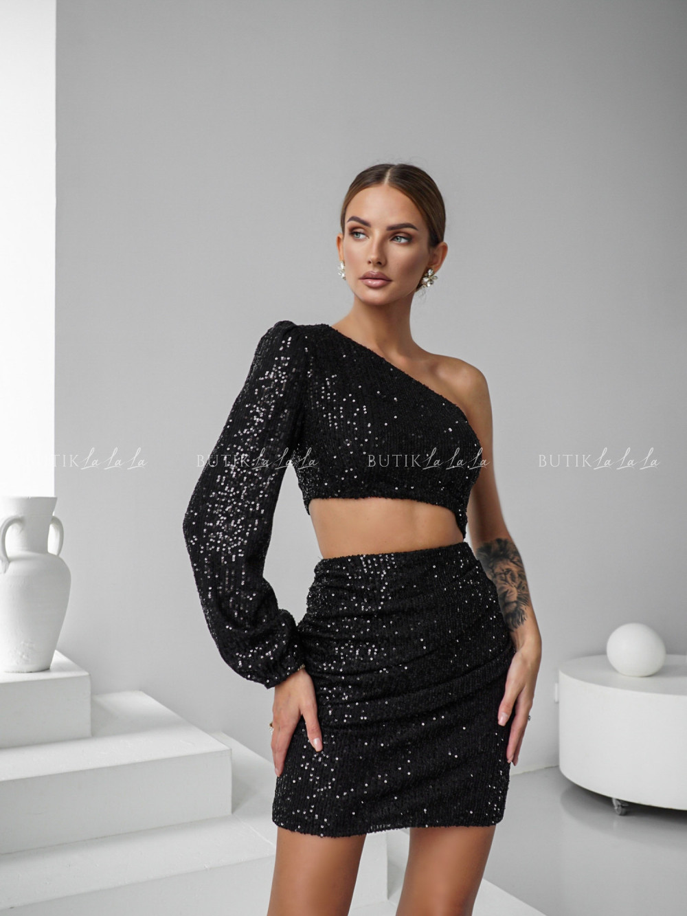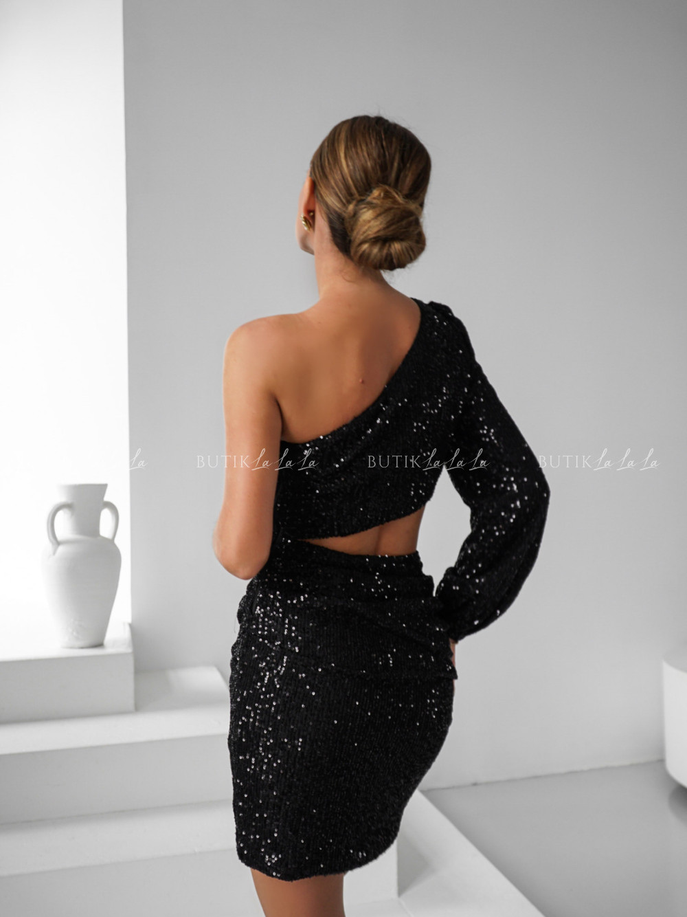 Sukienka cekinowa z wycięciem czarna Emily