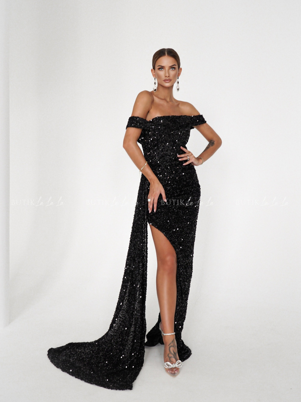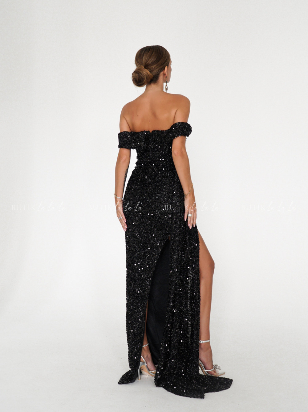 Sukienka maxi cekinowa czarna Ambra
