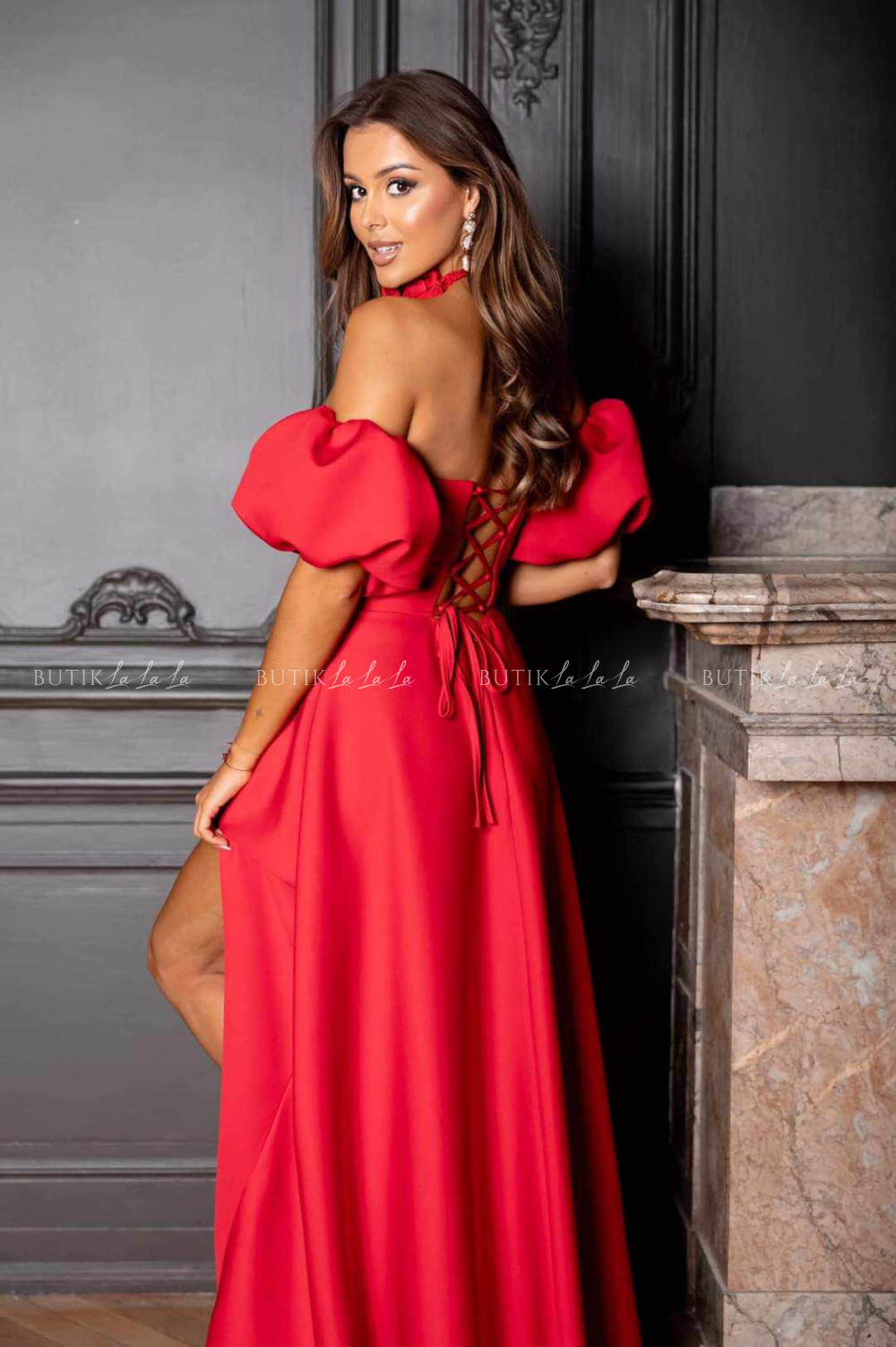 Wymiary sukienki mogą się różnić w zależności od wiązania na plecach.