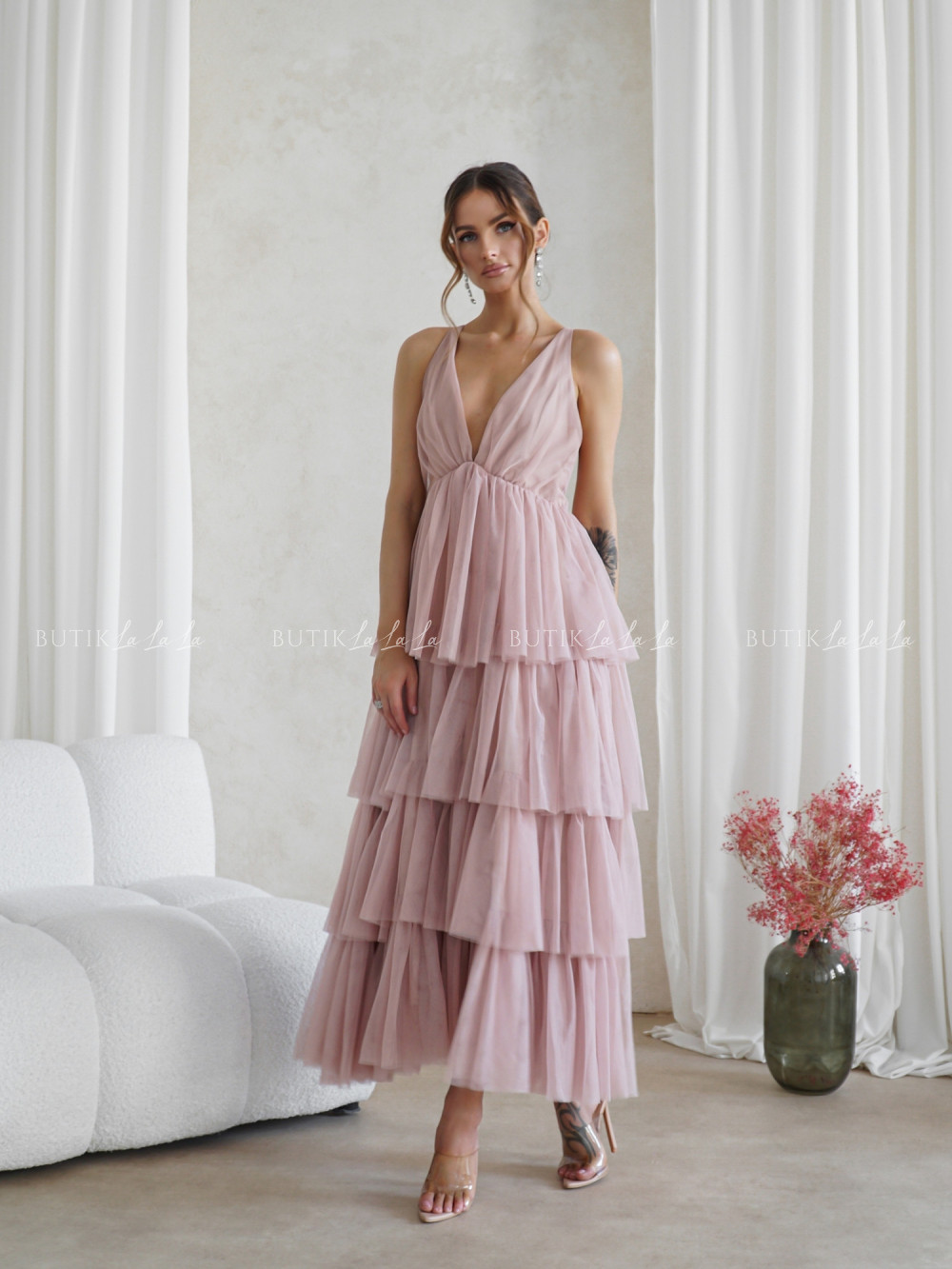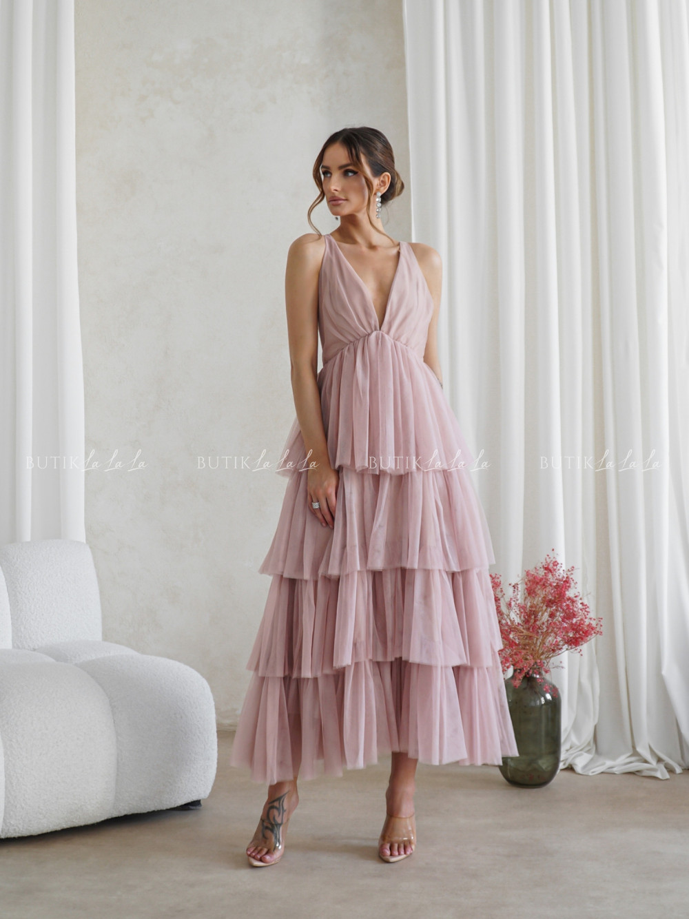 sukienka pudrowa tiulowa Magnolie
