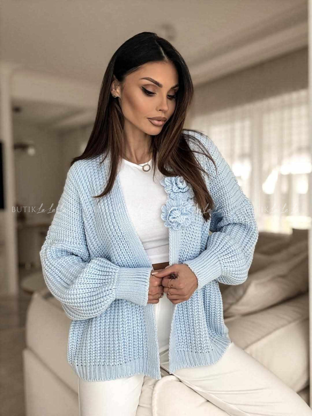 Sweter błękitny z kwiatem Blue Eyes