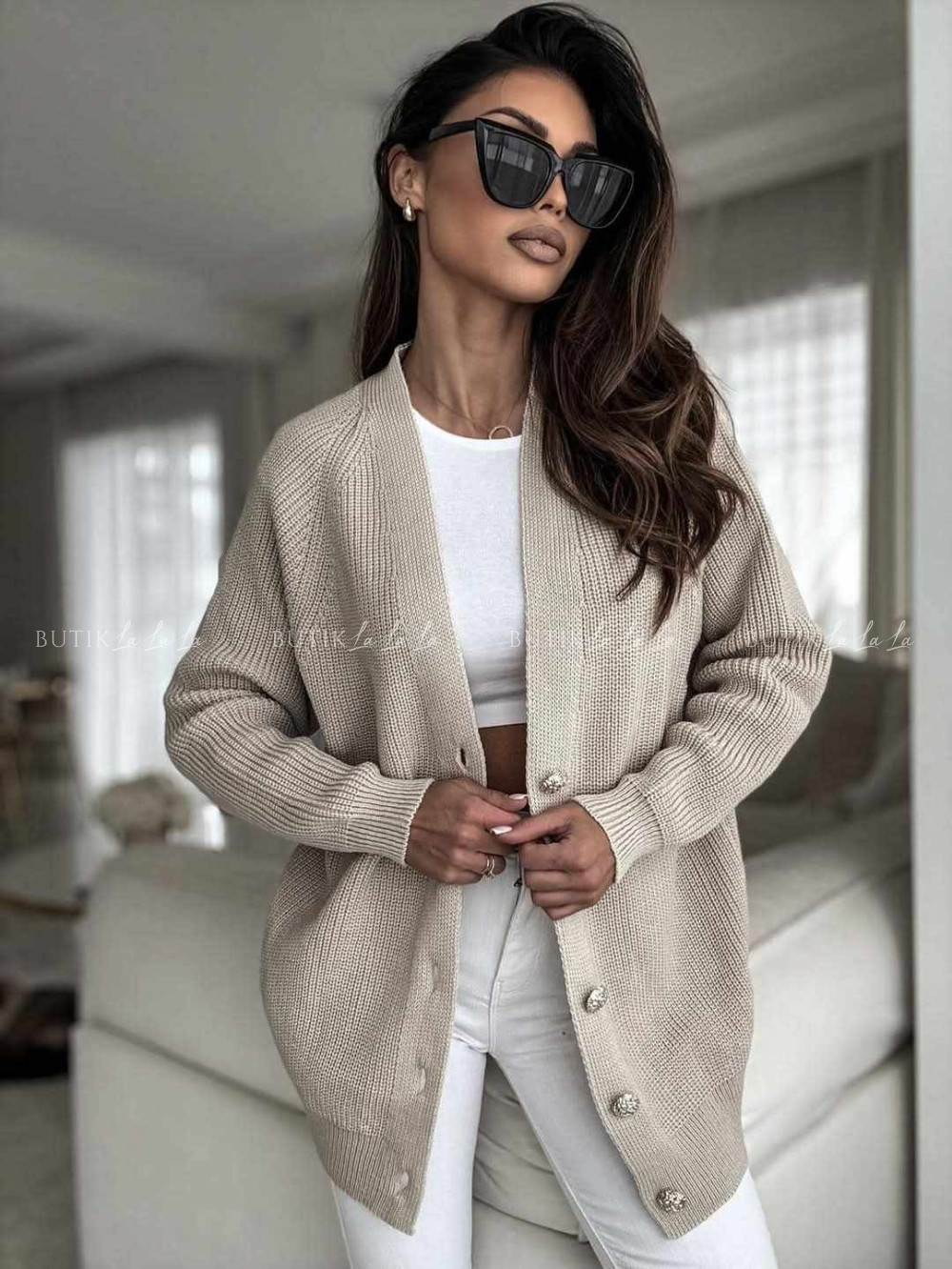 Modelka ma 170 cm wzrostu, prezentuje rozmiar Uni