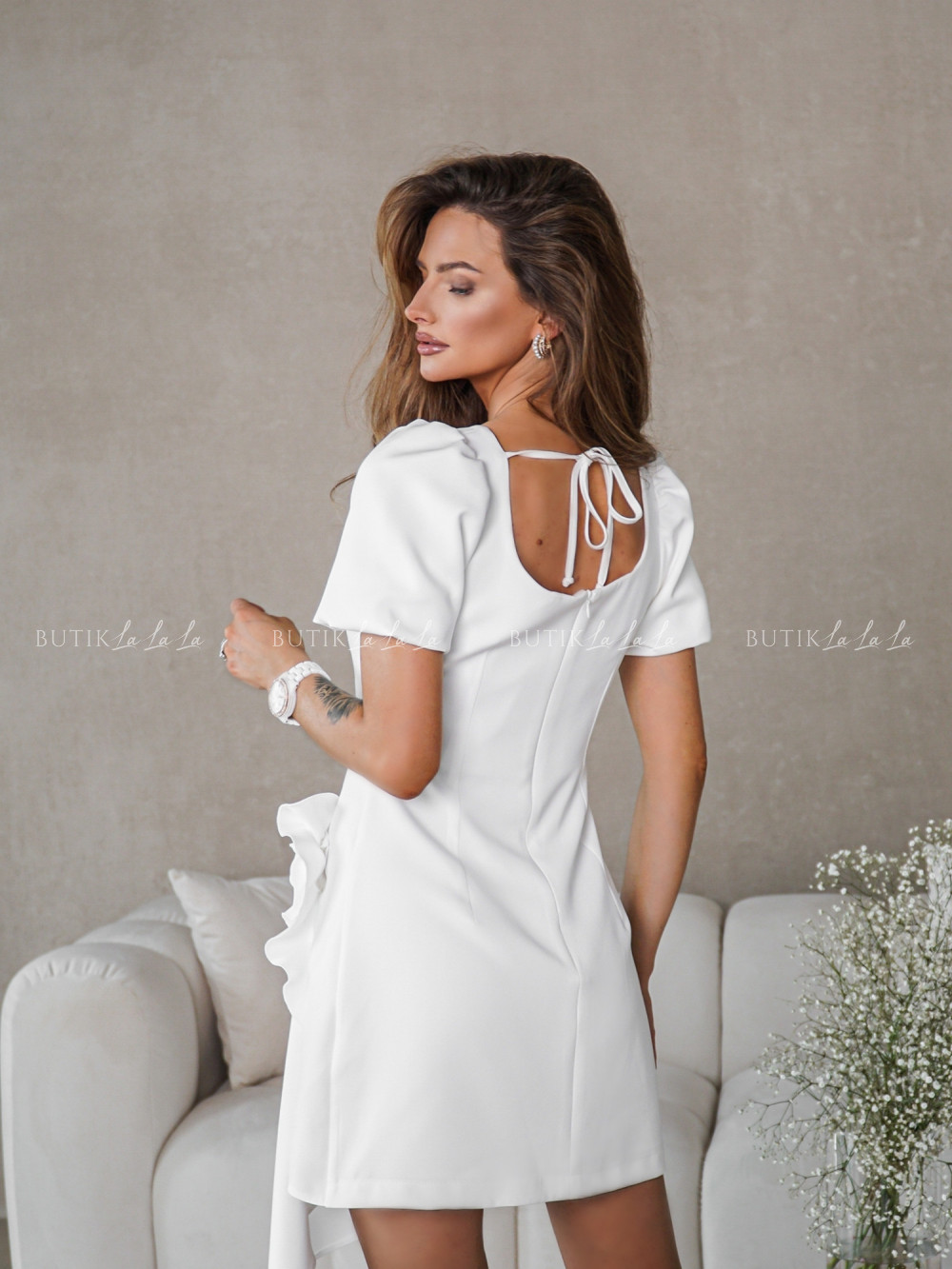 Sukienka mini z kwiatem biała Florida
