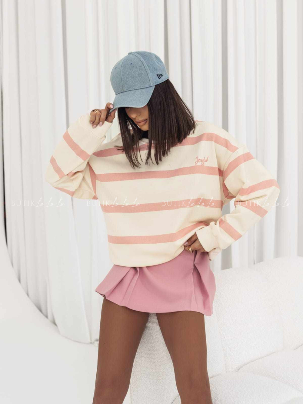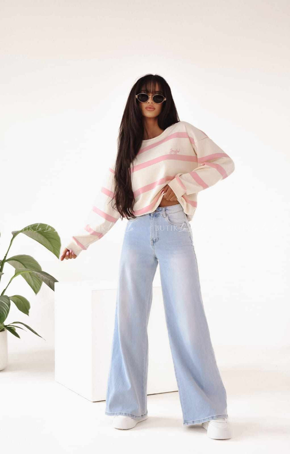 Modelka ma 170 cm wzrostu, prezentuje rozmiar UNI