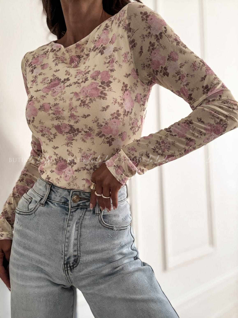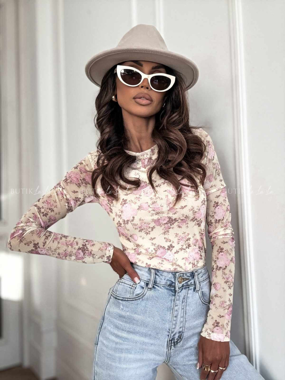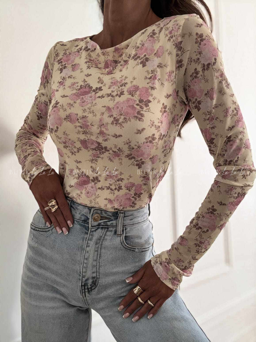 Bluzka z siateczką w kwiatowy print Selfie