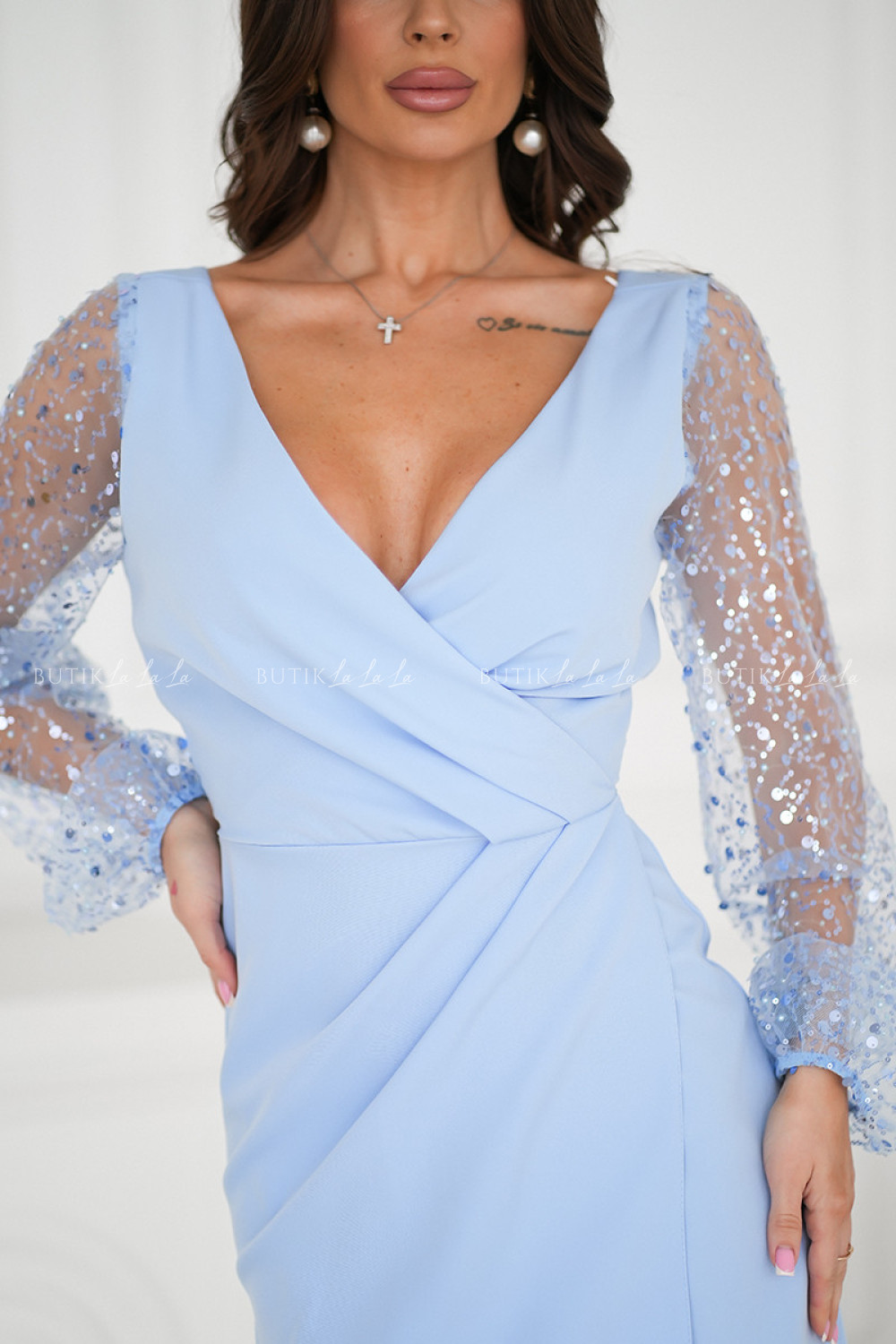 sukienka mini błękitna z ozdobnym rękawem Adora