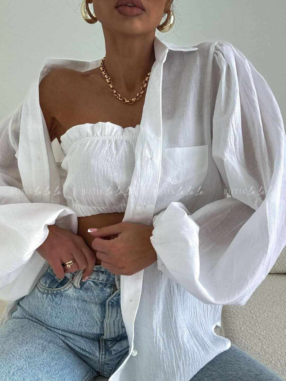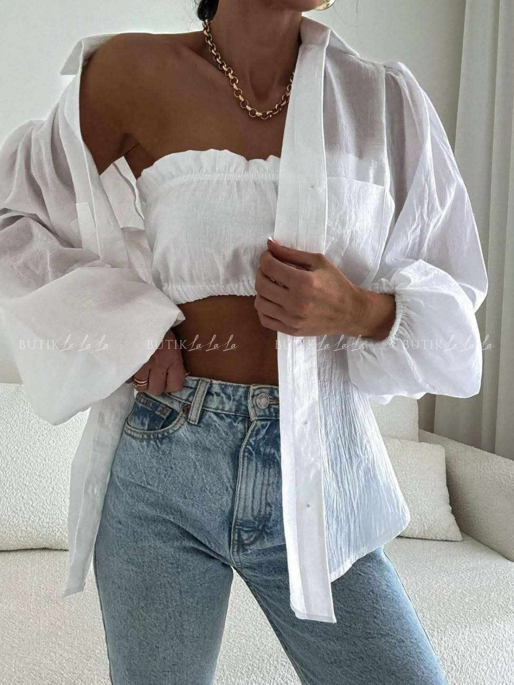 Komplet biały koszula z topem