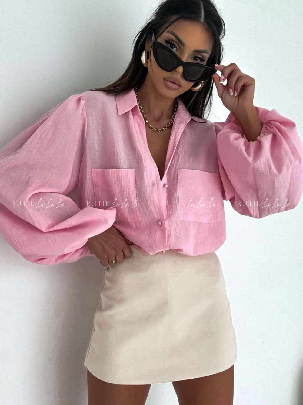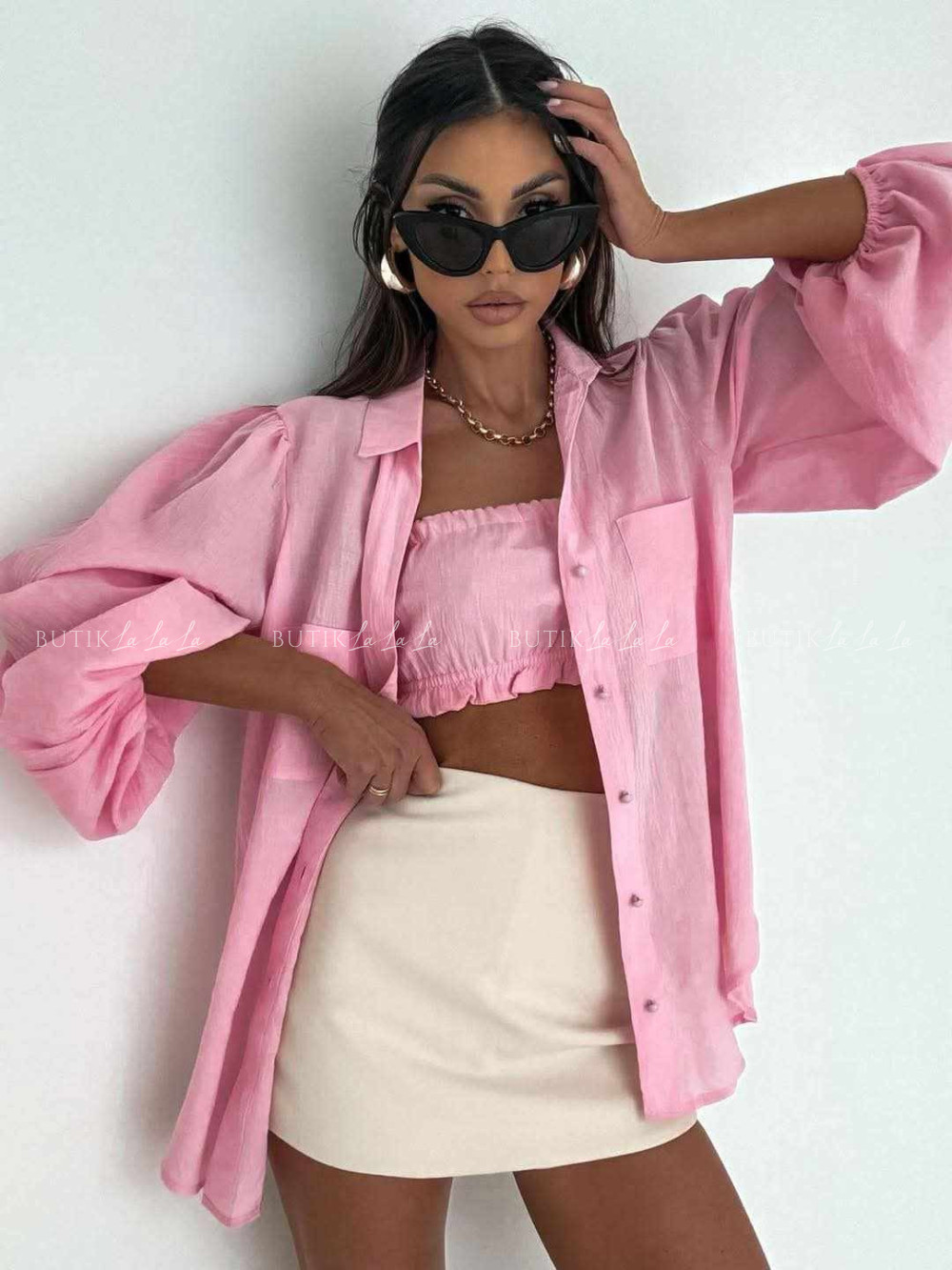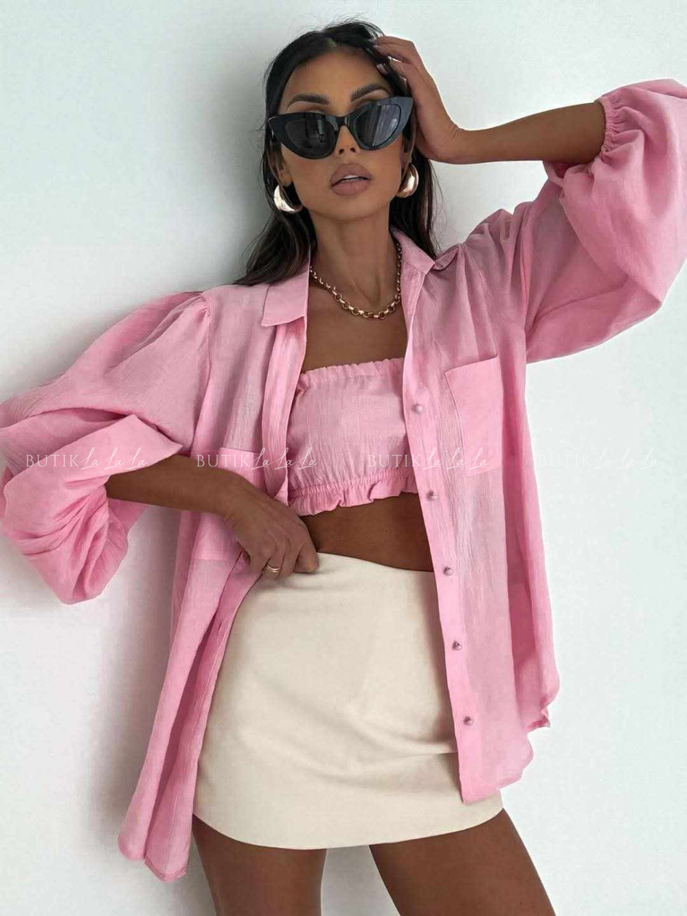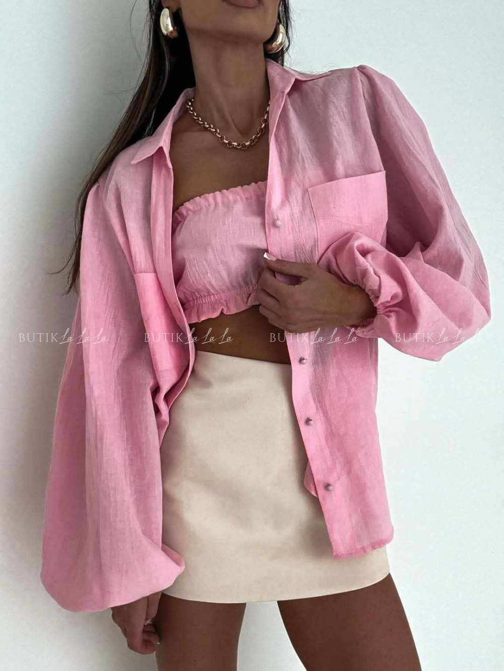 Komplet różowy koszula z topem