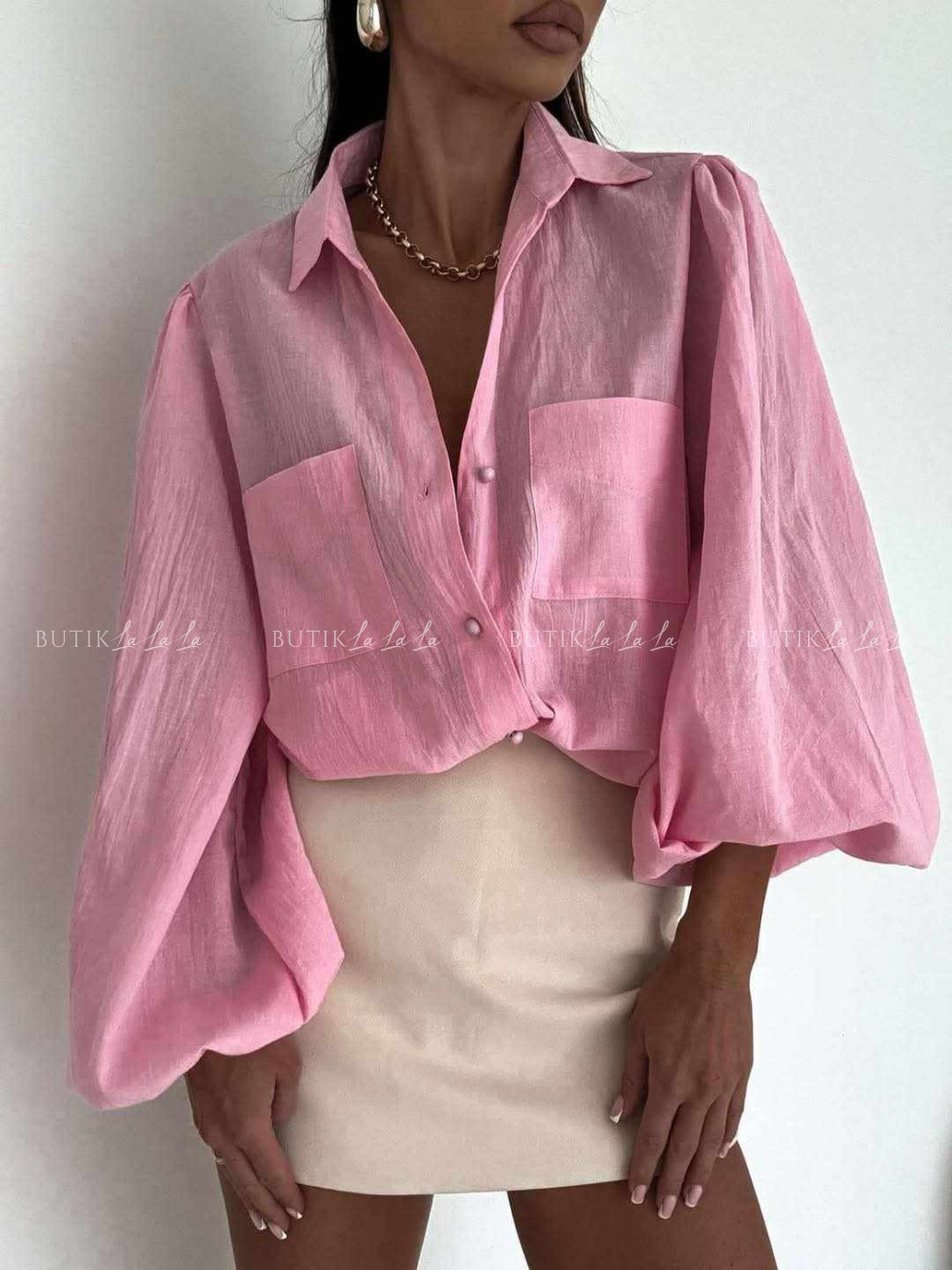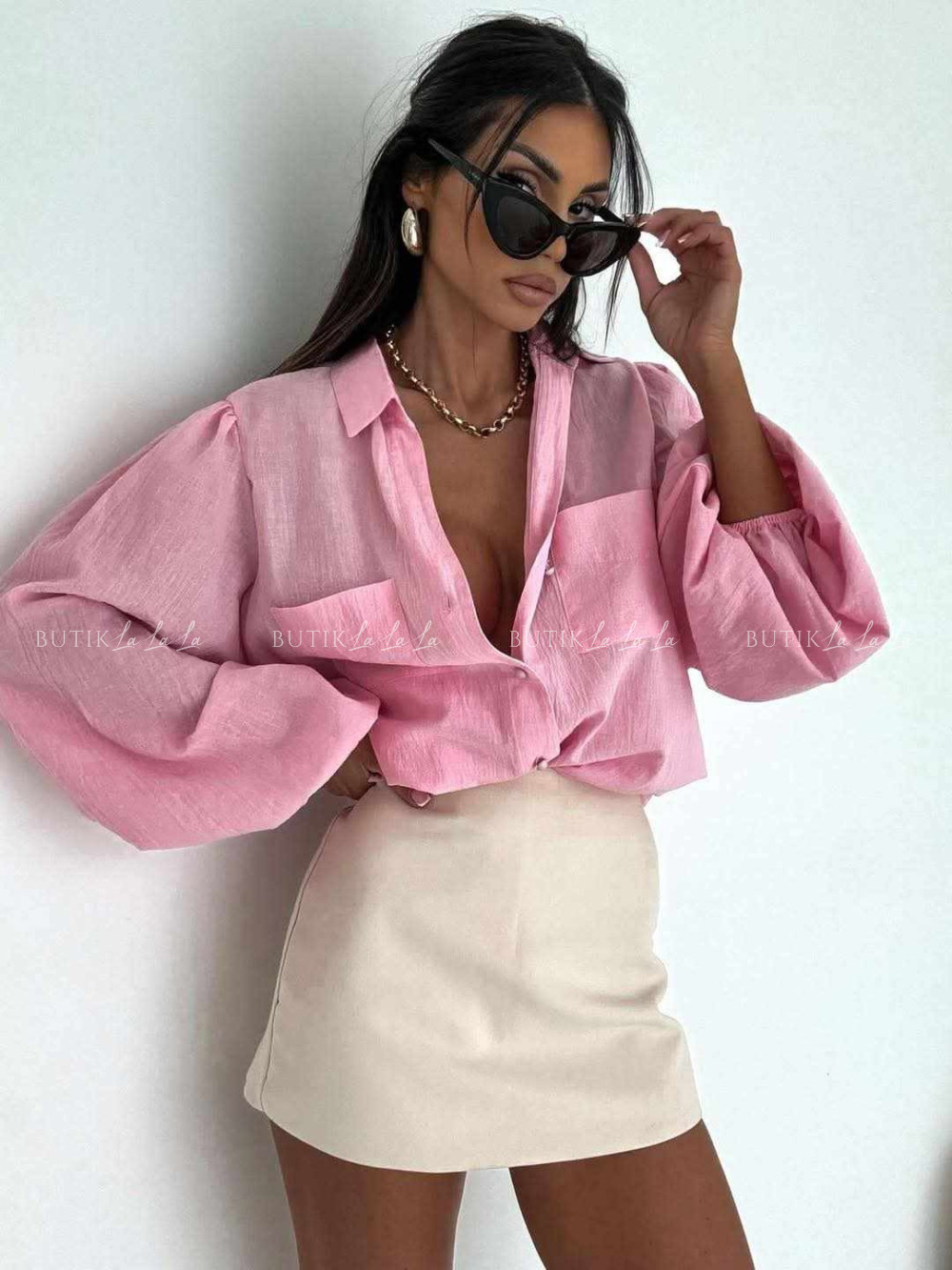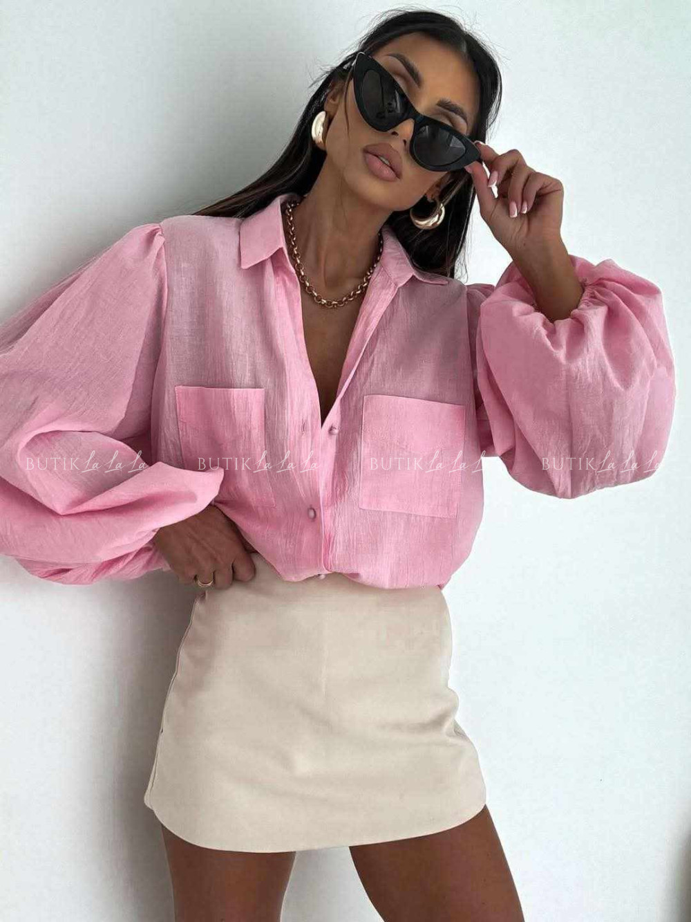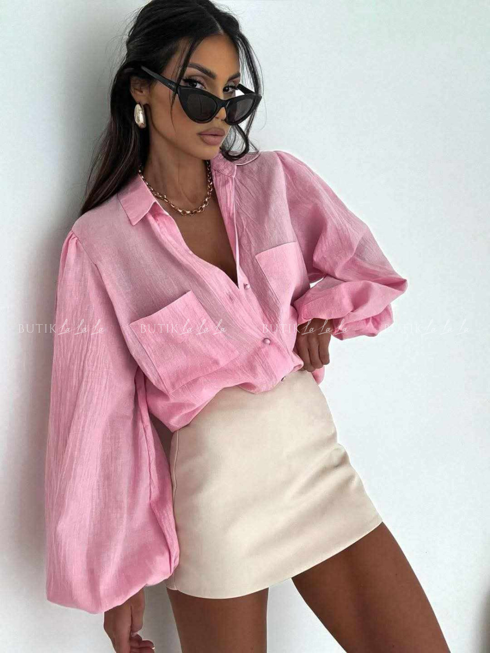 Komplet różowy koszula z topem