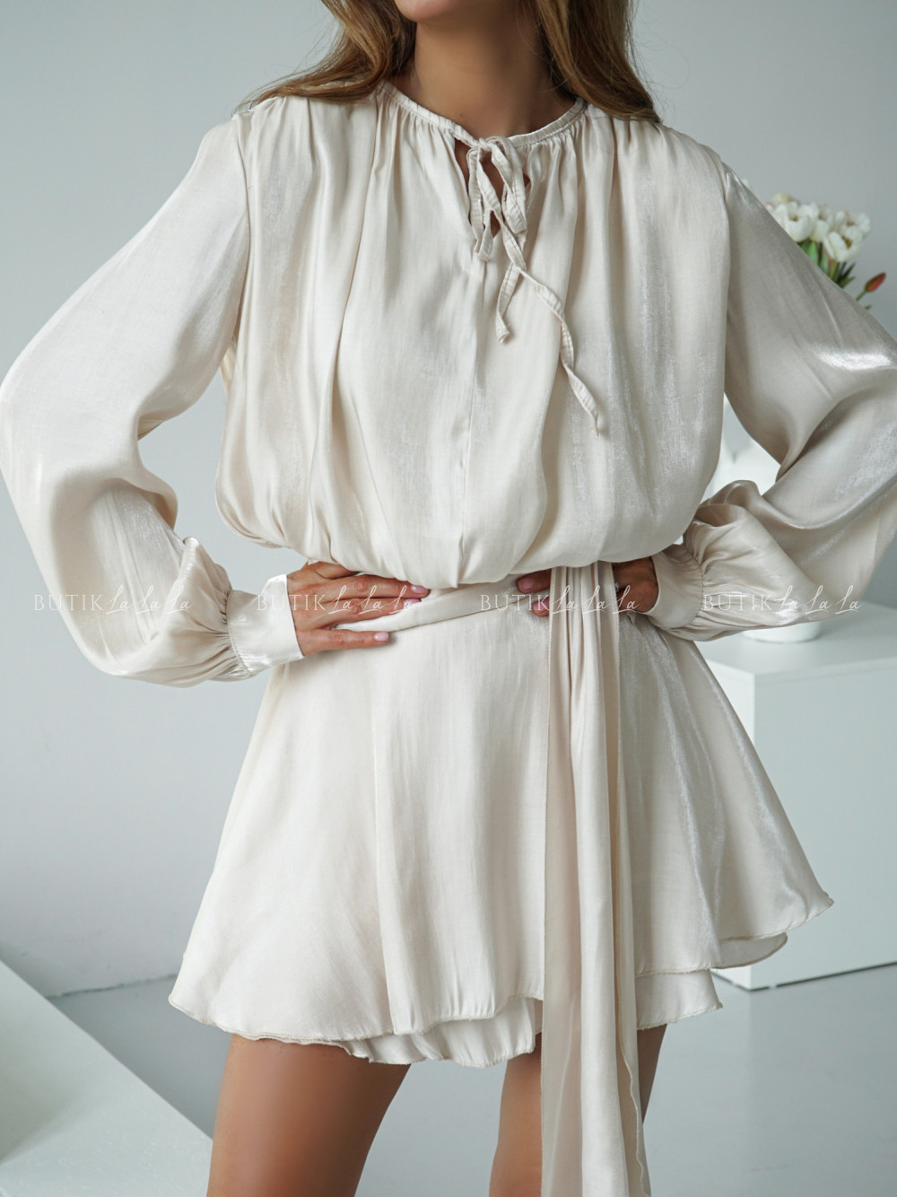 Sukienka mini połyskująca kremowa Milla
