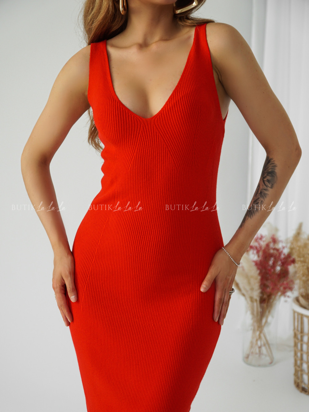Sukienka prążkowana czerwona Driss