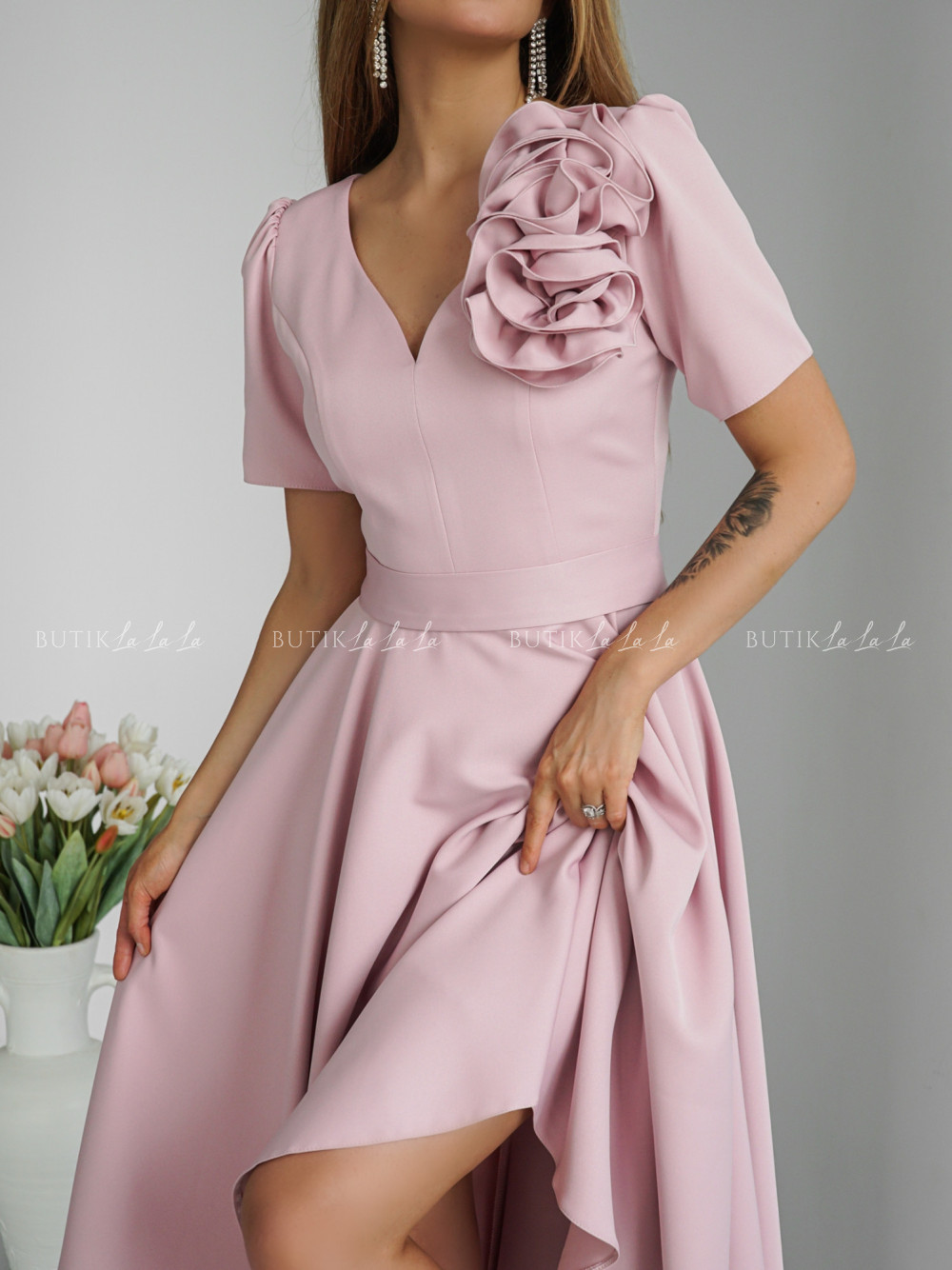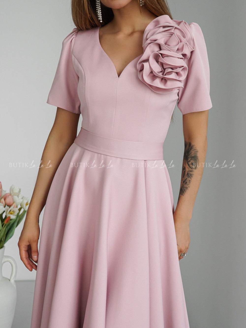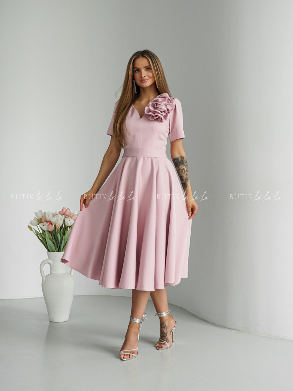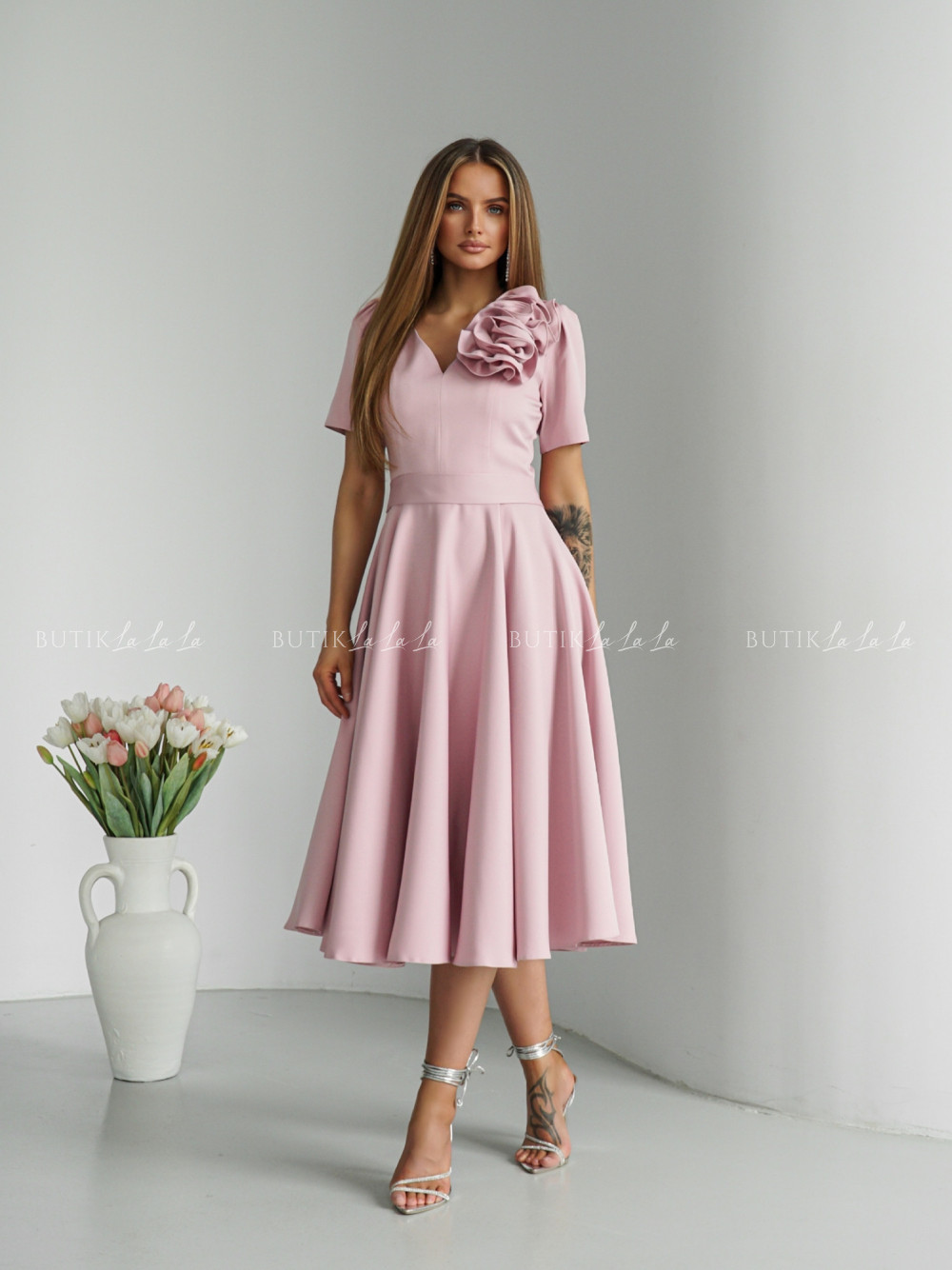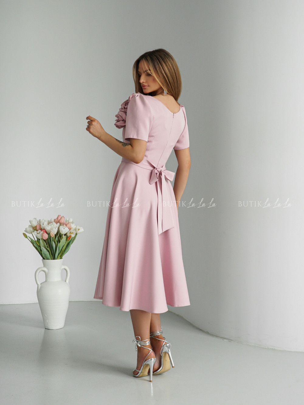 Sukienka midi pudrowa Nathaly