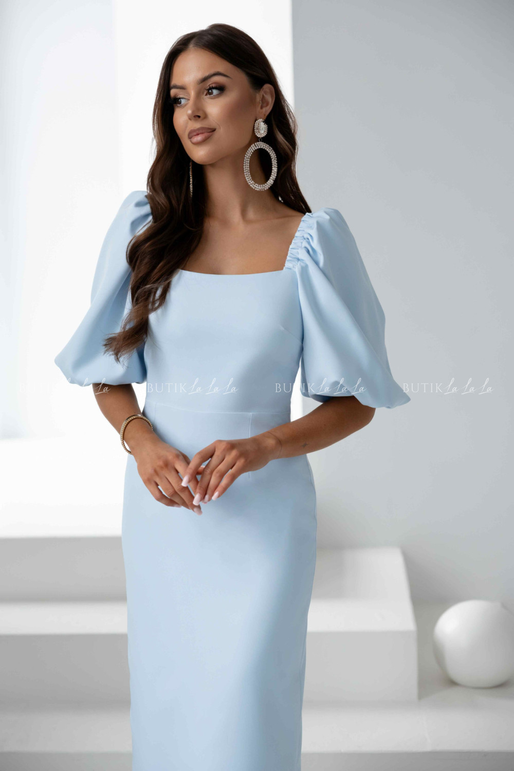 Sukienka midi błękitna z bufiastymi rękawami Filharmony