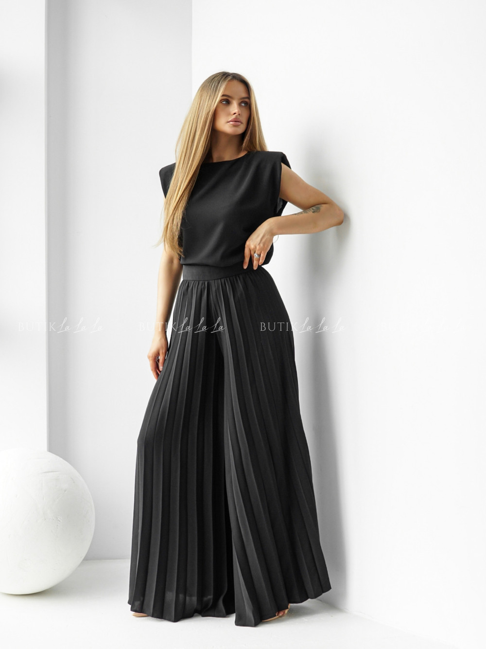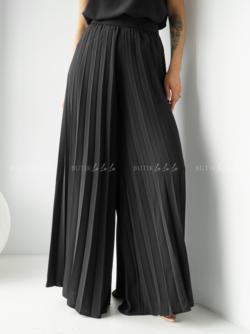 Spodnie plisowane czarne Lisse