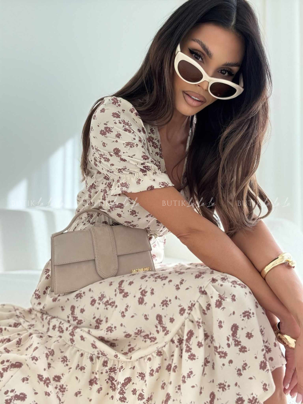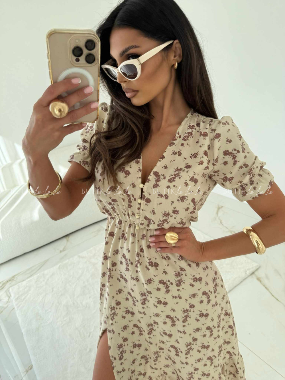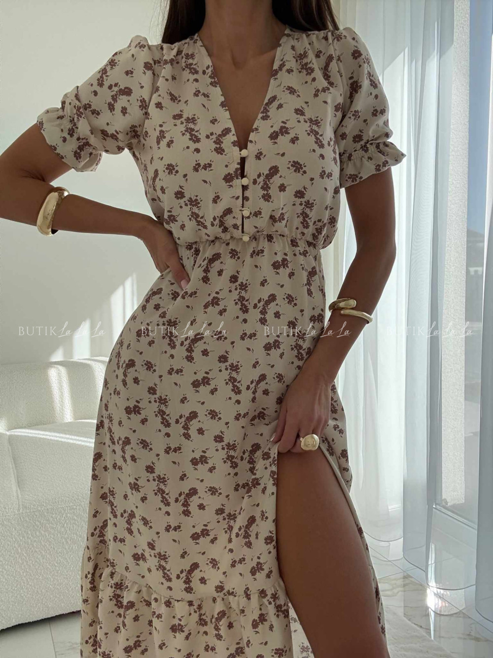 Sukienka beżowa w kwiatowy print Slorea