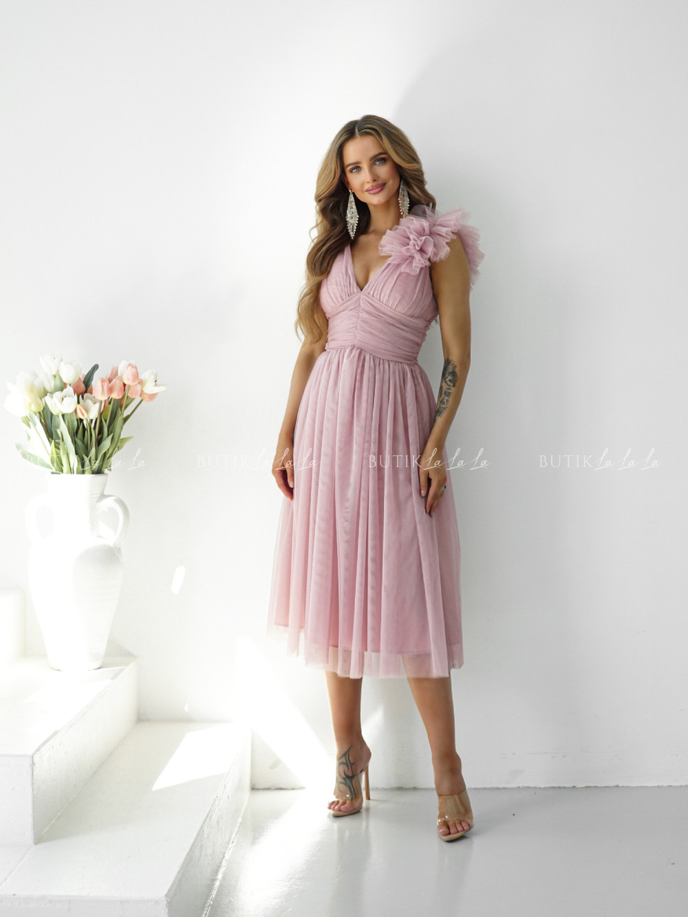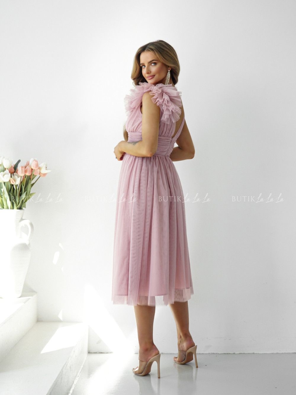 Sukienka midi tiulowa pudrowa Olivia