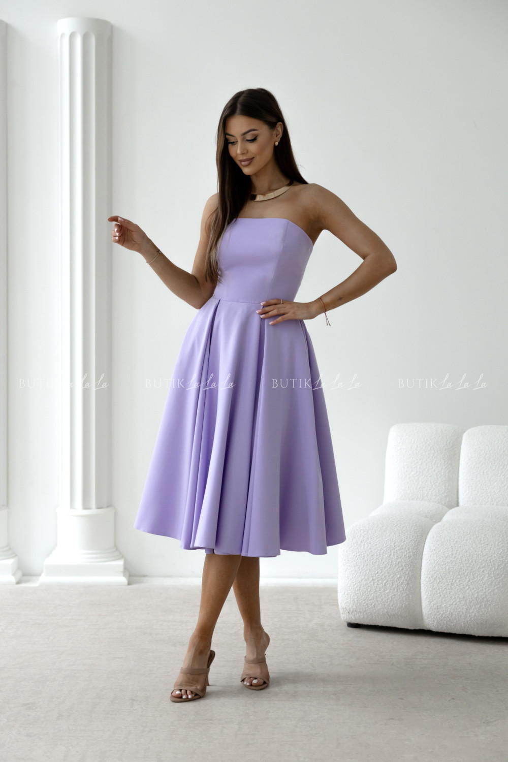 Sukienka rozkloszowana lawendowa Mufina