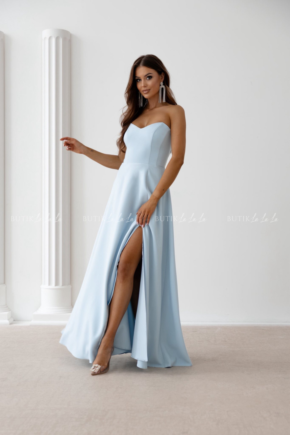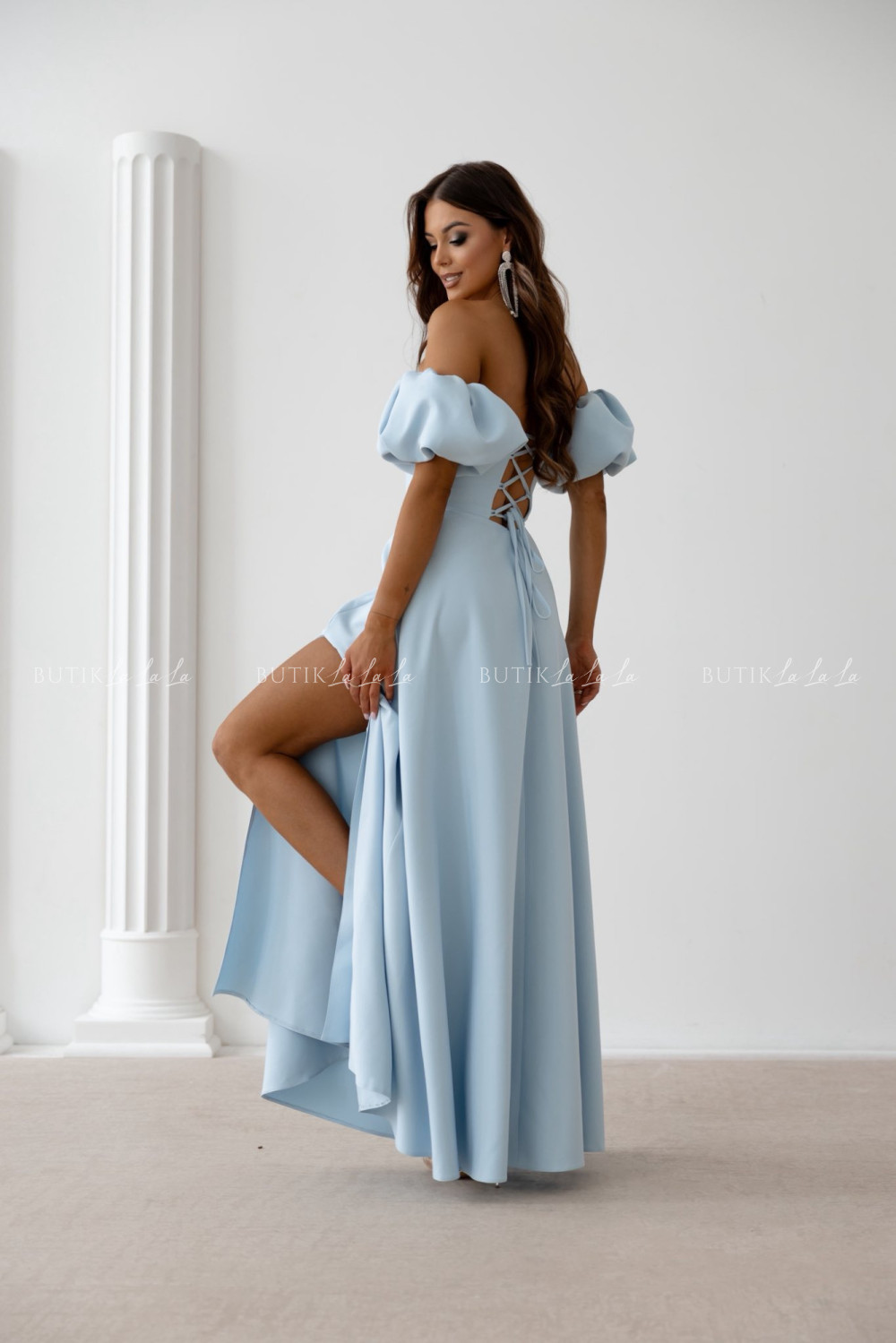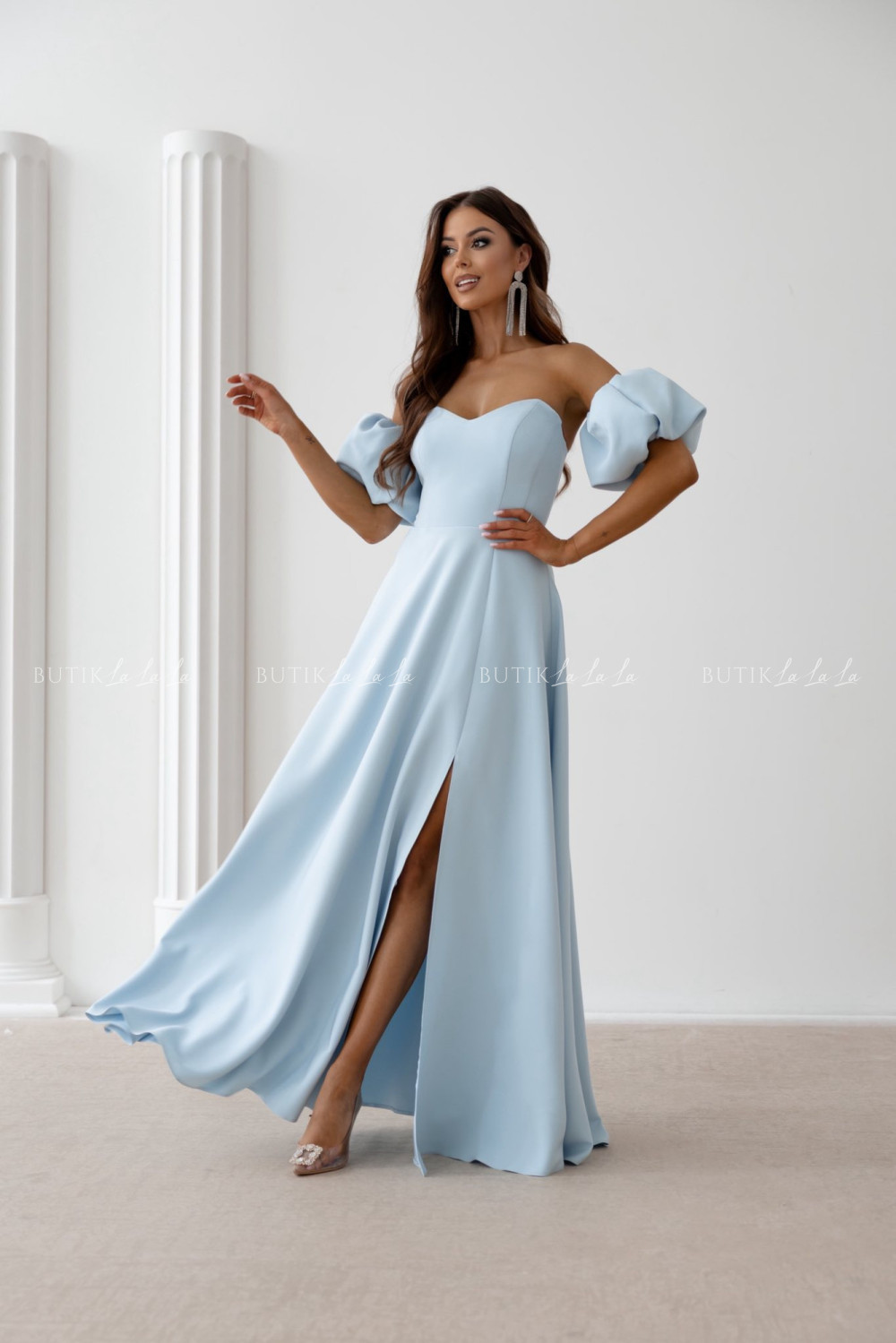 Sukienka maxi z rękawami błękitna Bridget