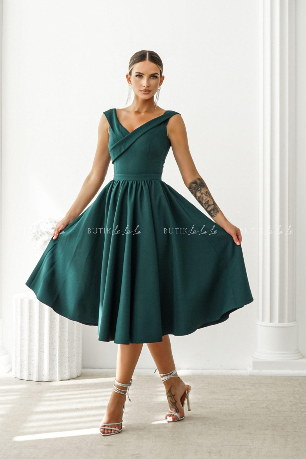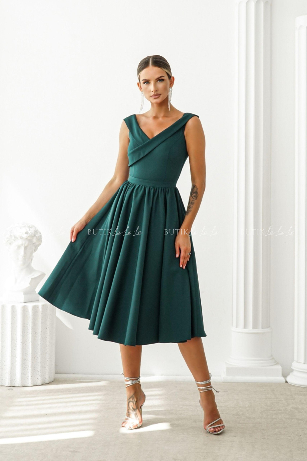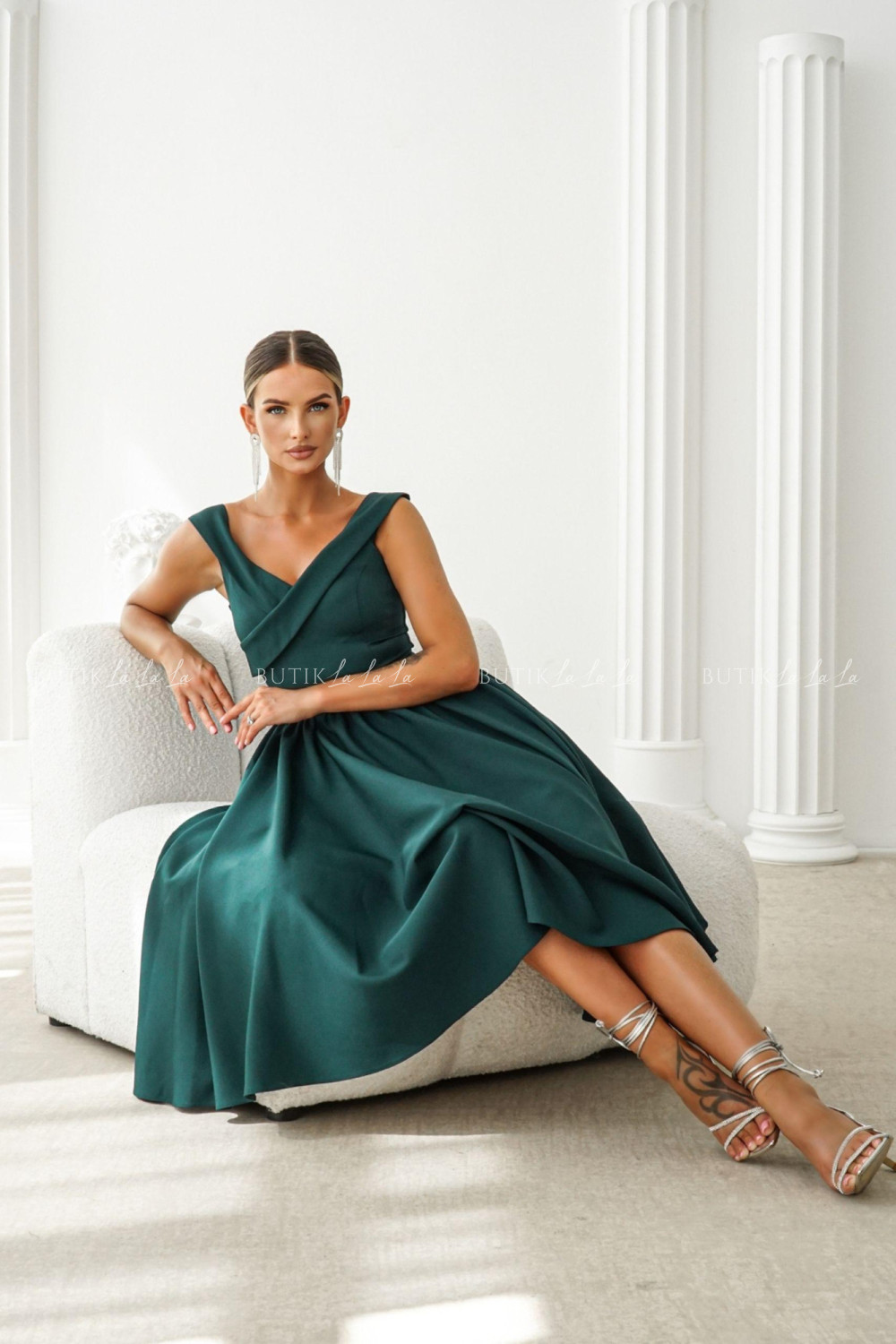Sukienka butelkowa zieleń Lesandra PREMIUM