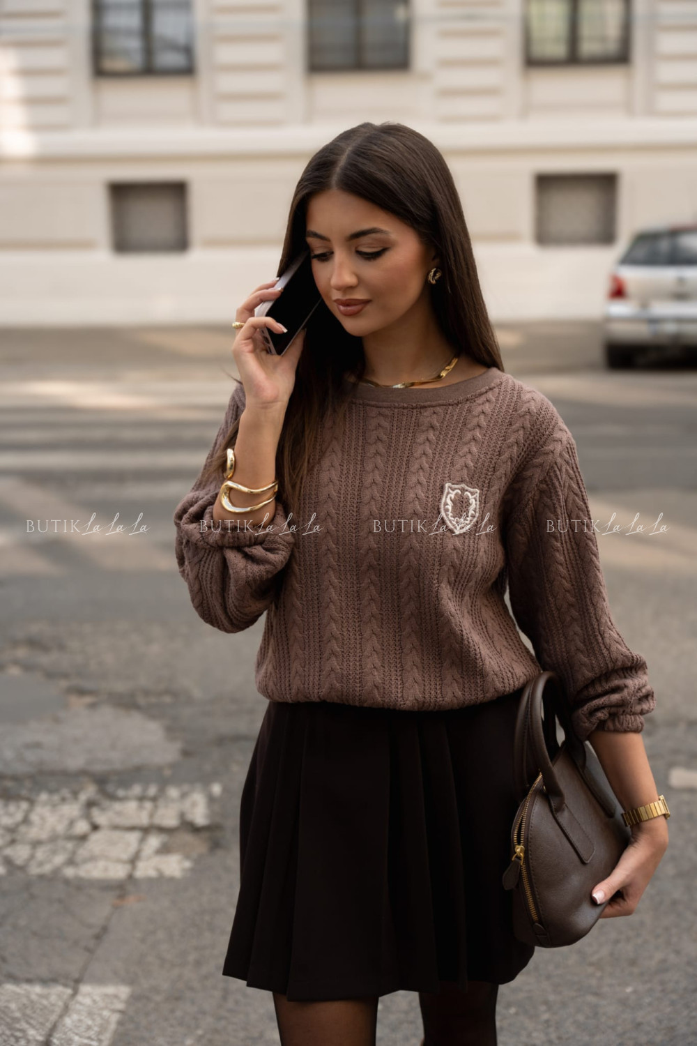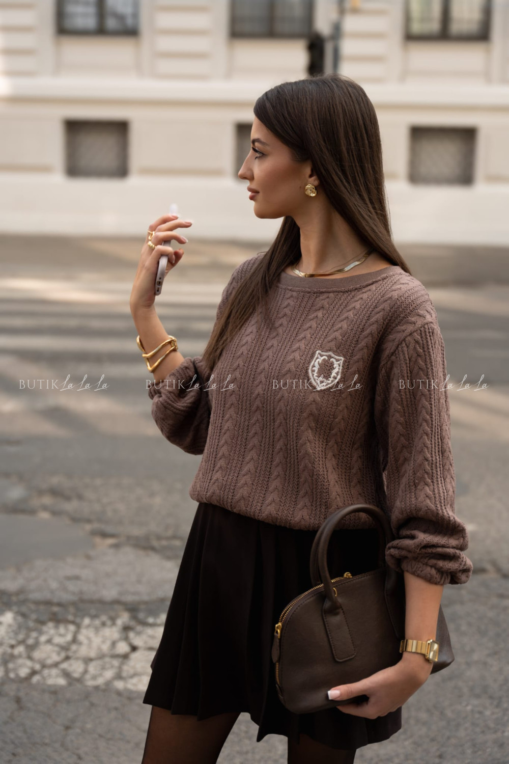 Bluzka dzianinowa kawowa Hogwart
