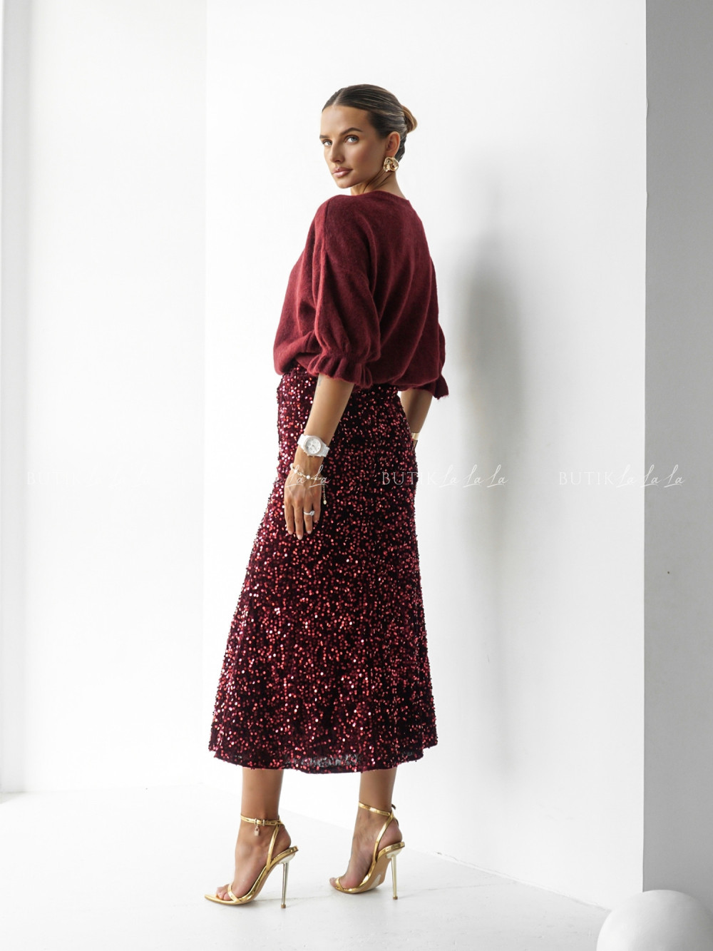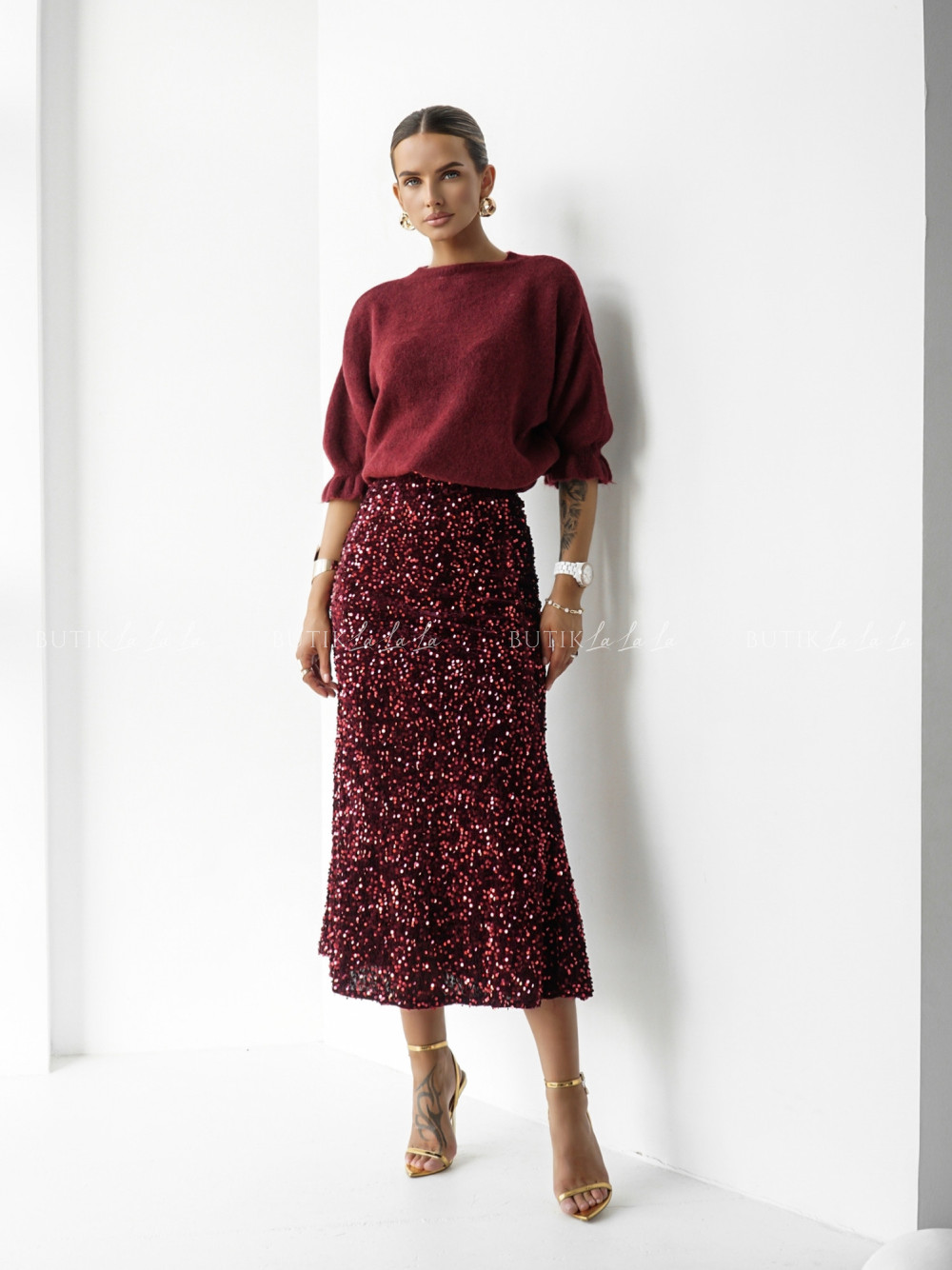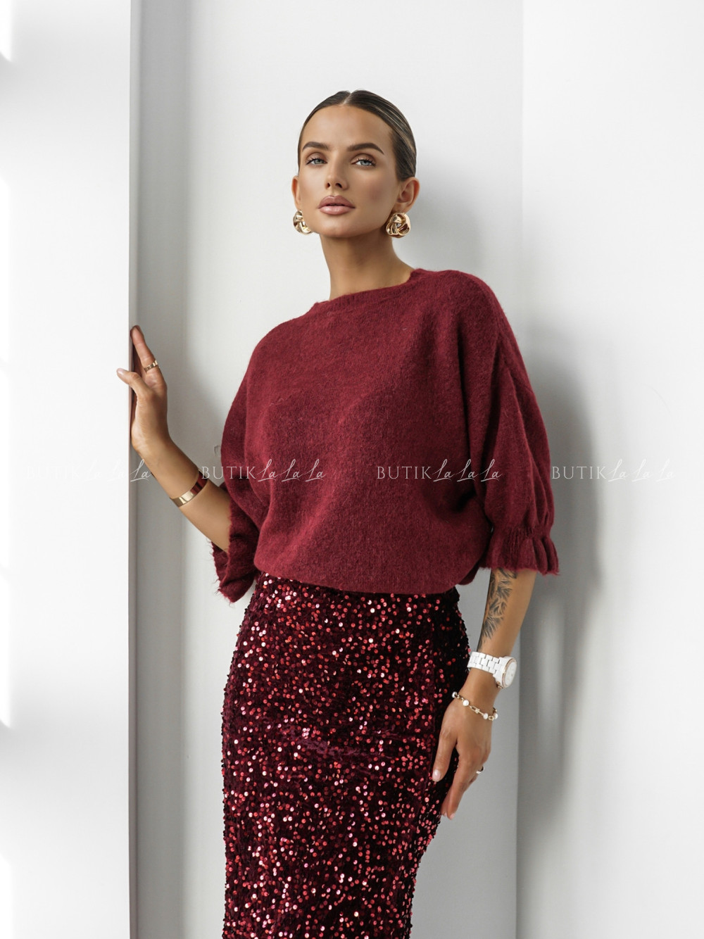 Sweter na krótki rękaw bordowy Bire