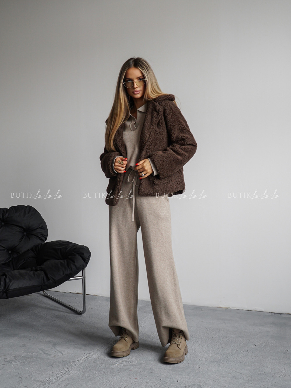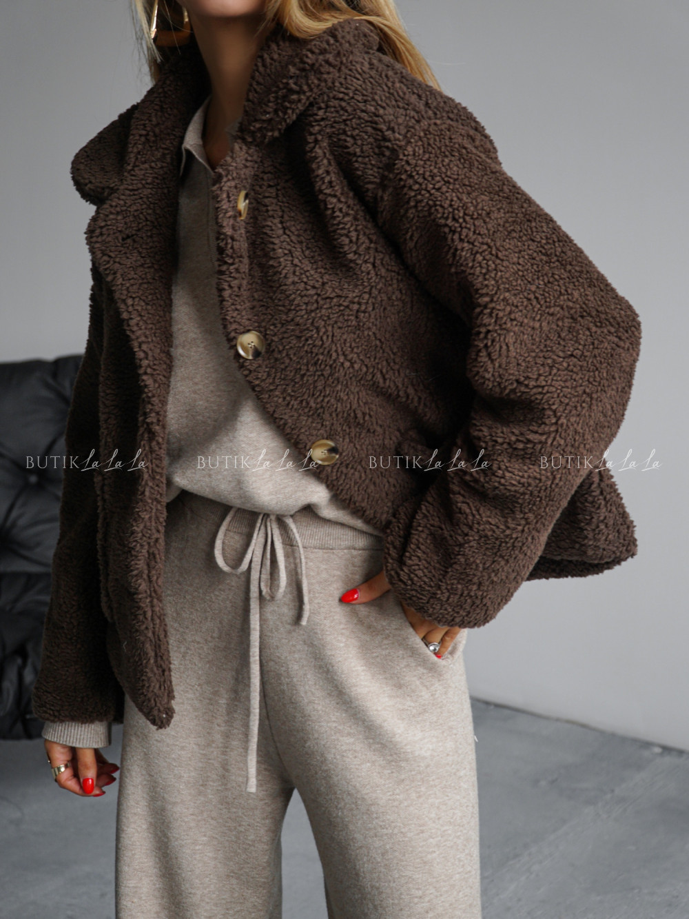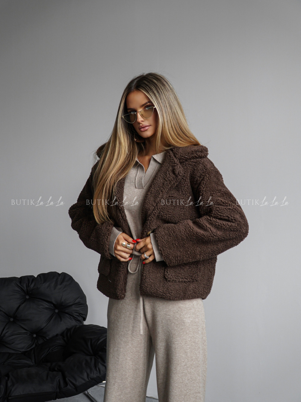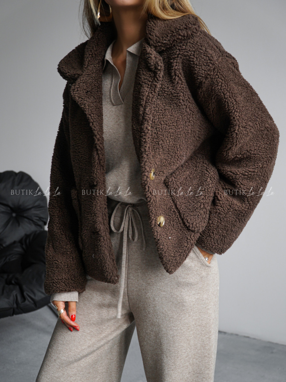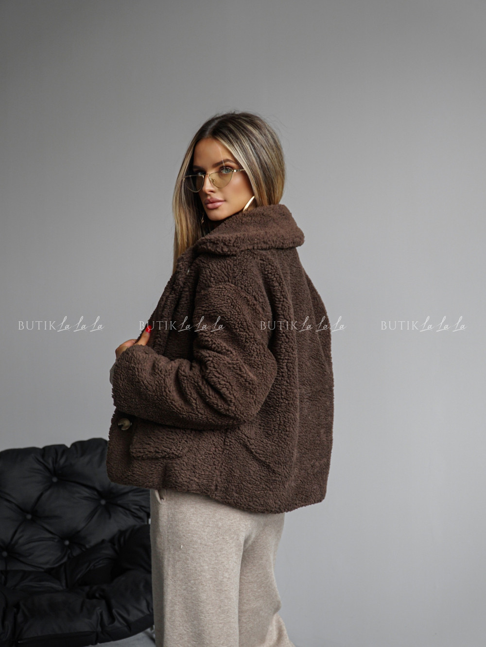 Kurtka typu futro brązowa Lambi