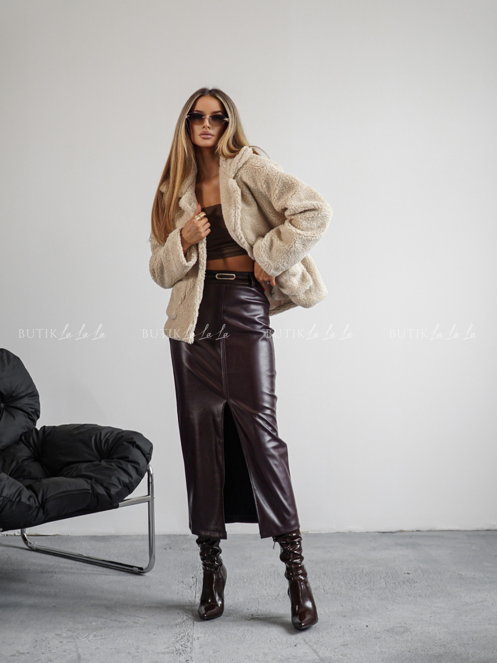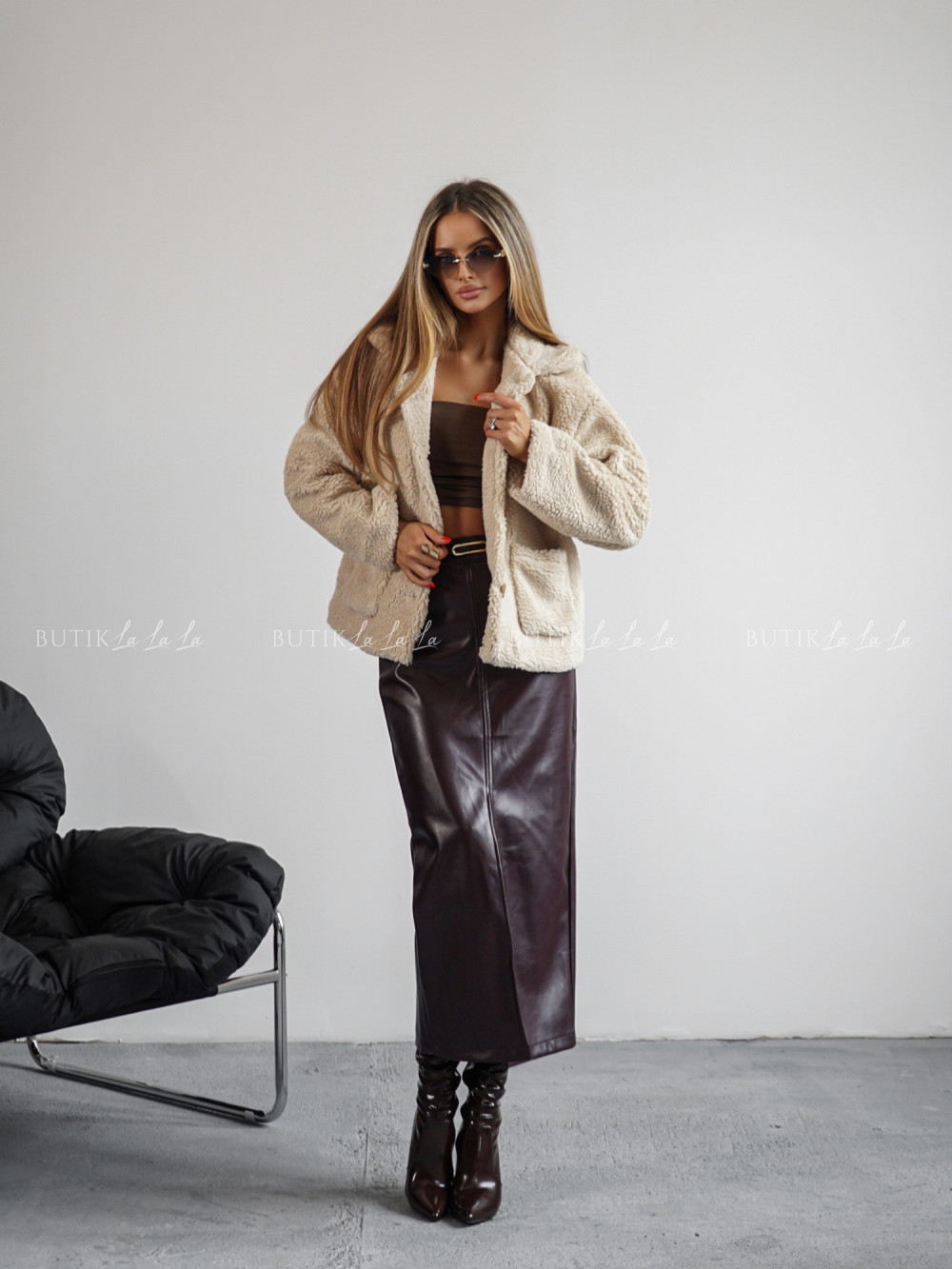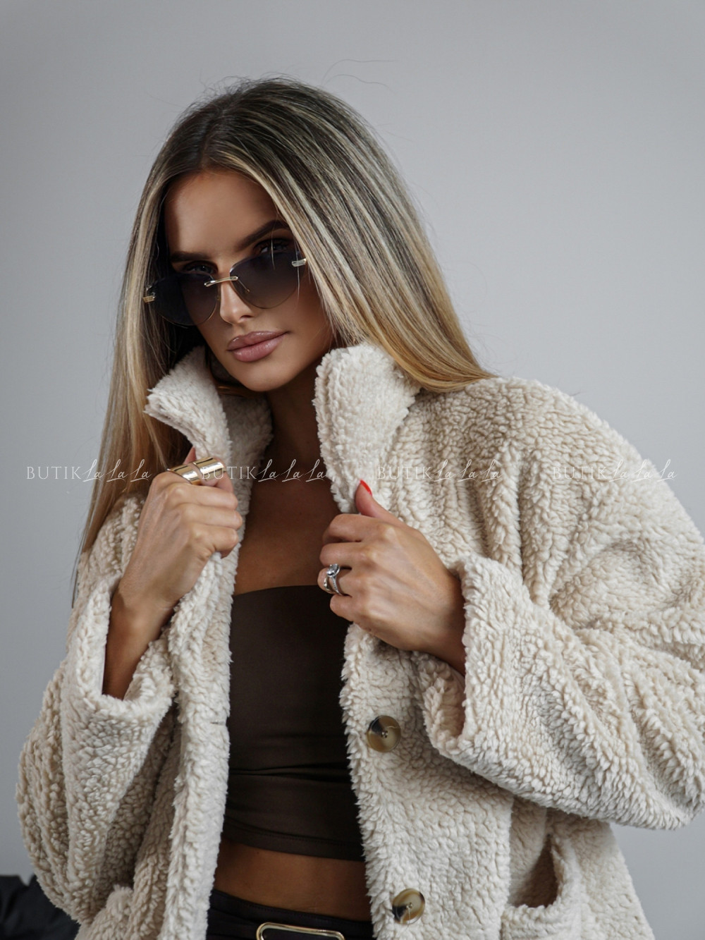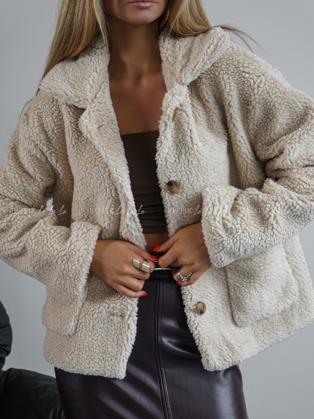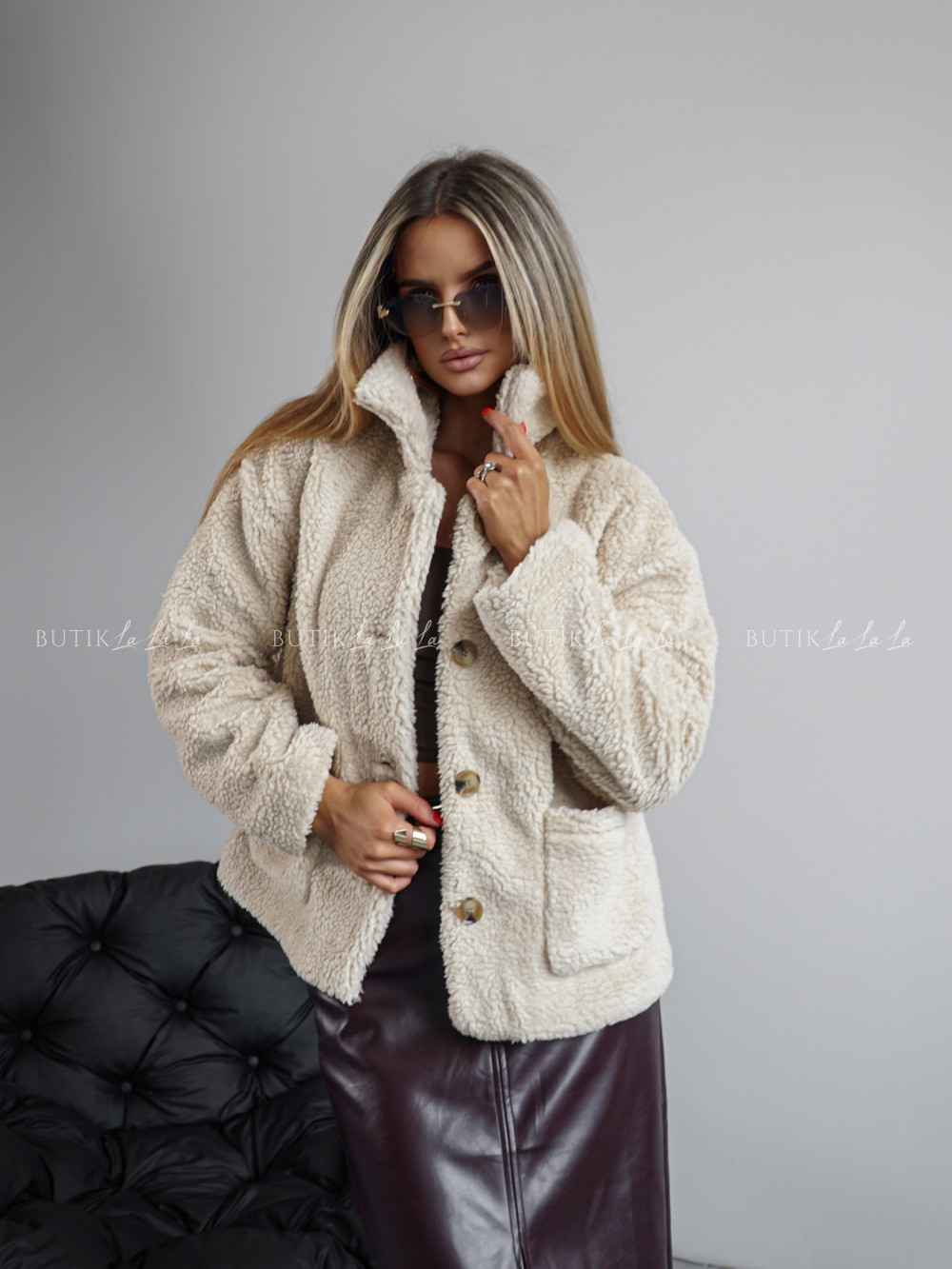 Kurtka typu futro kremowa Lambi