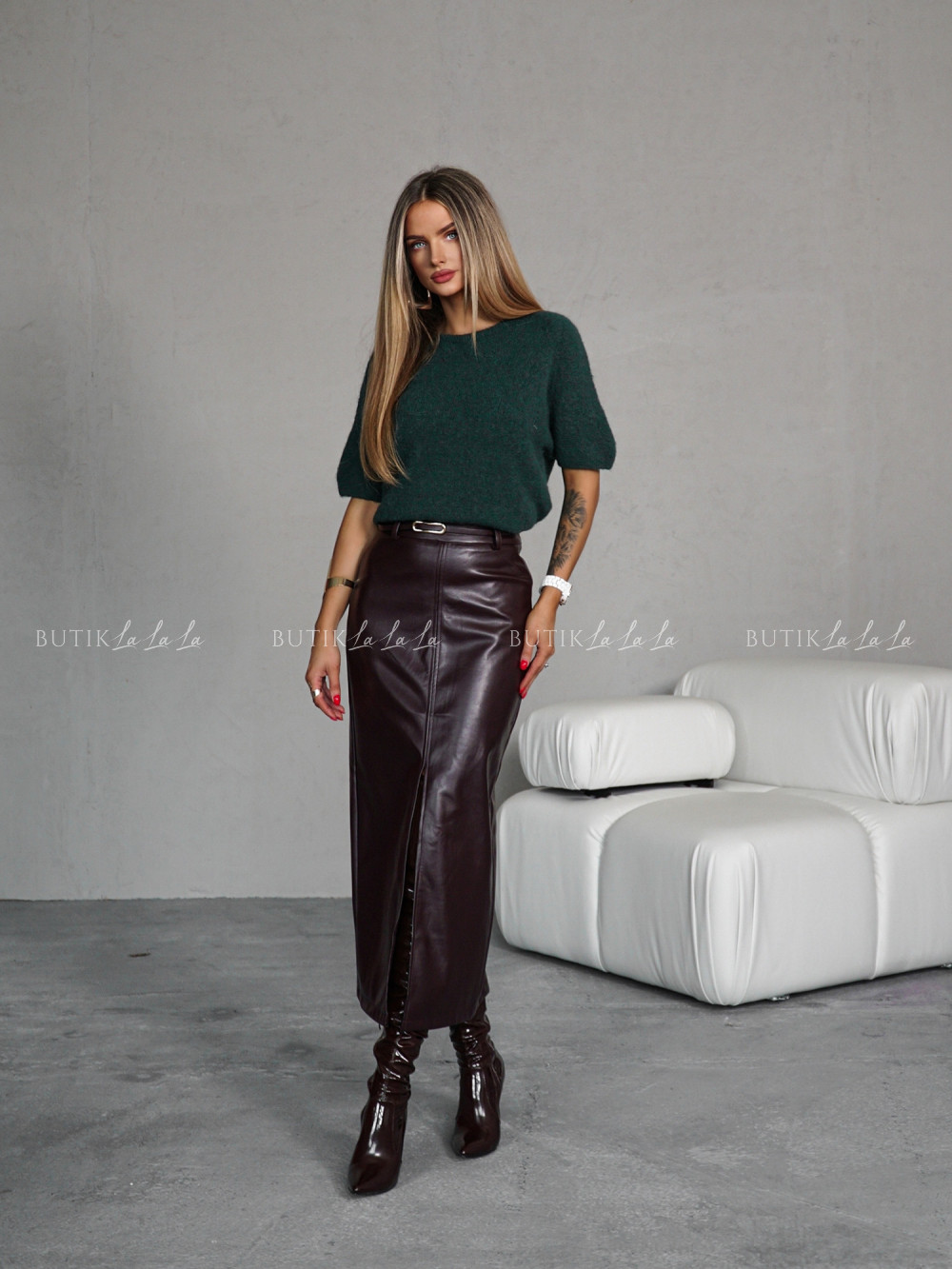 Sweter na krótki rękaw ciemno zielony Alpaca