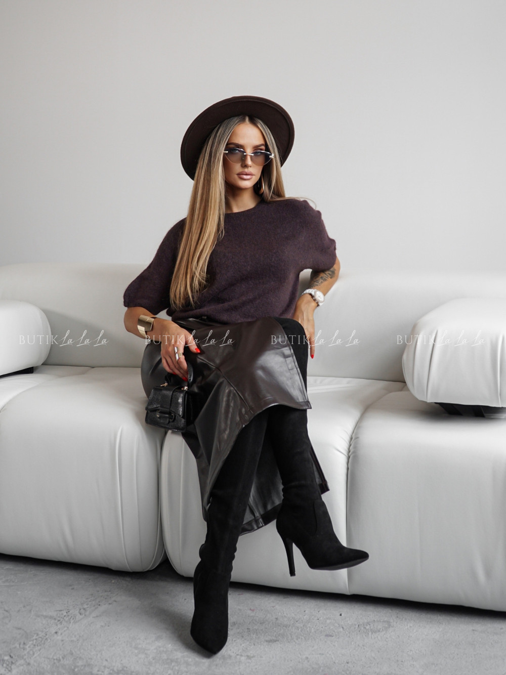 Sweter na krótki rękaw ciemno brązowy Alpaca