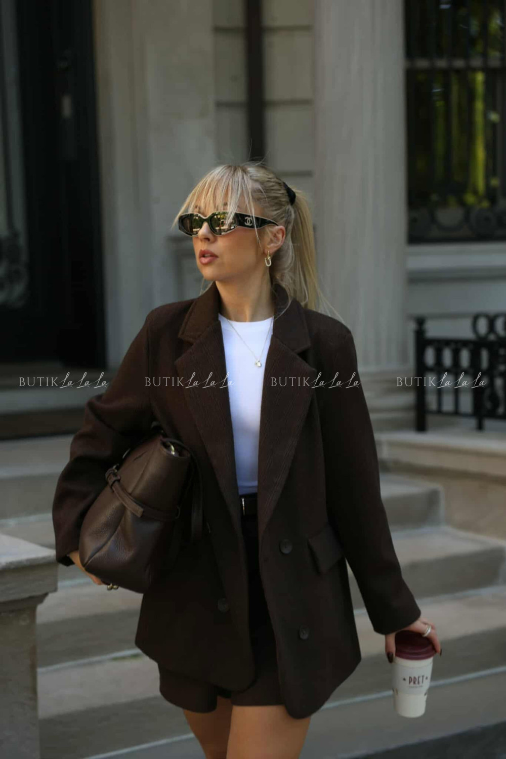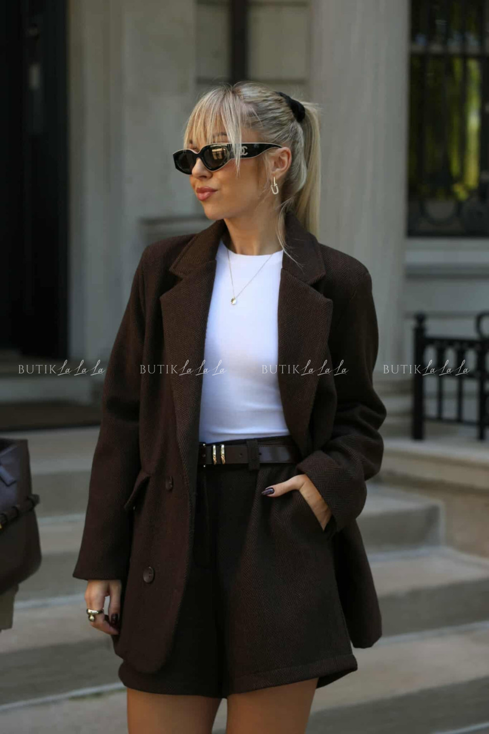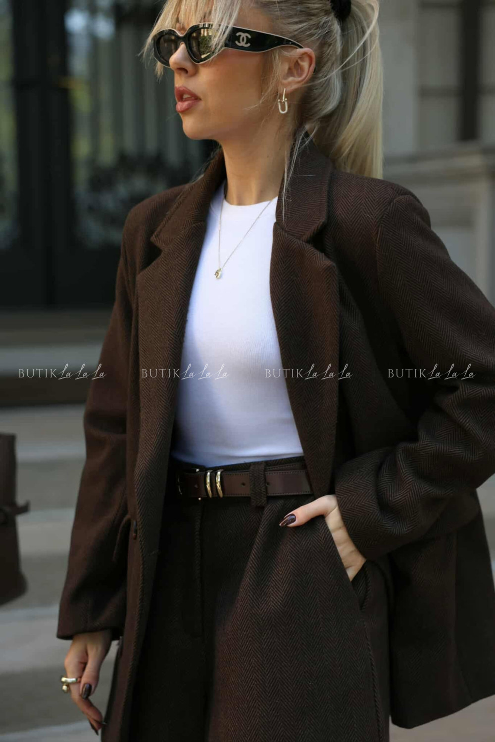 Płaszcz o kroju marynarki brązowy w jodełkę Busi