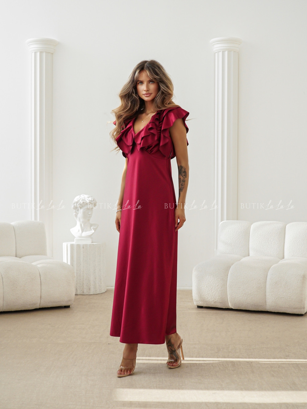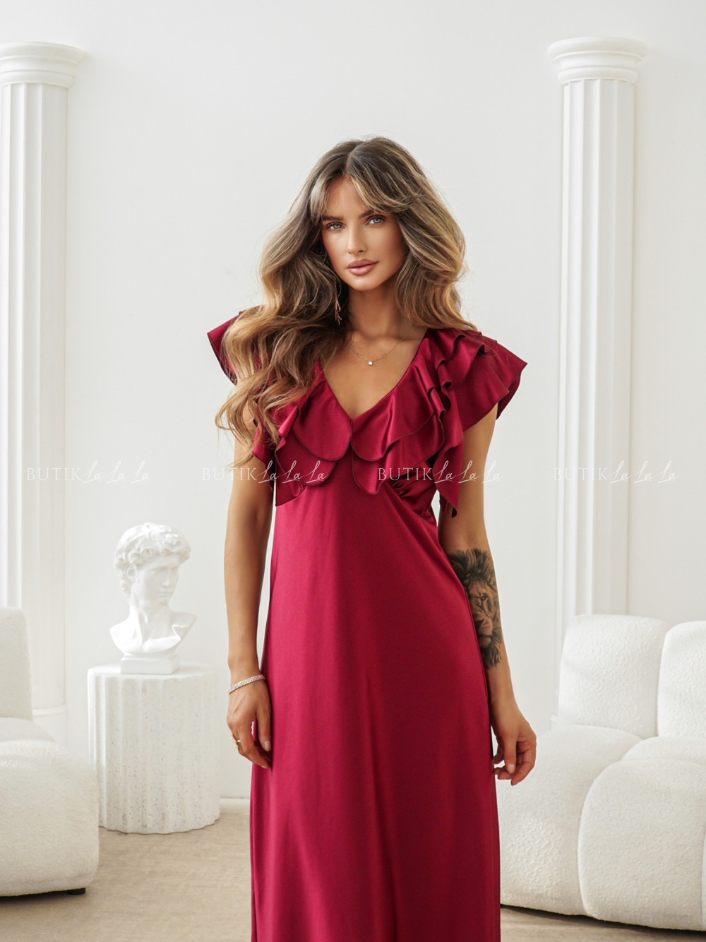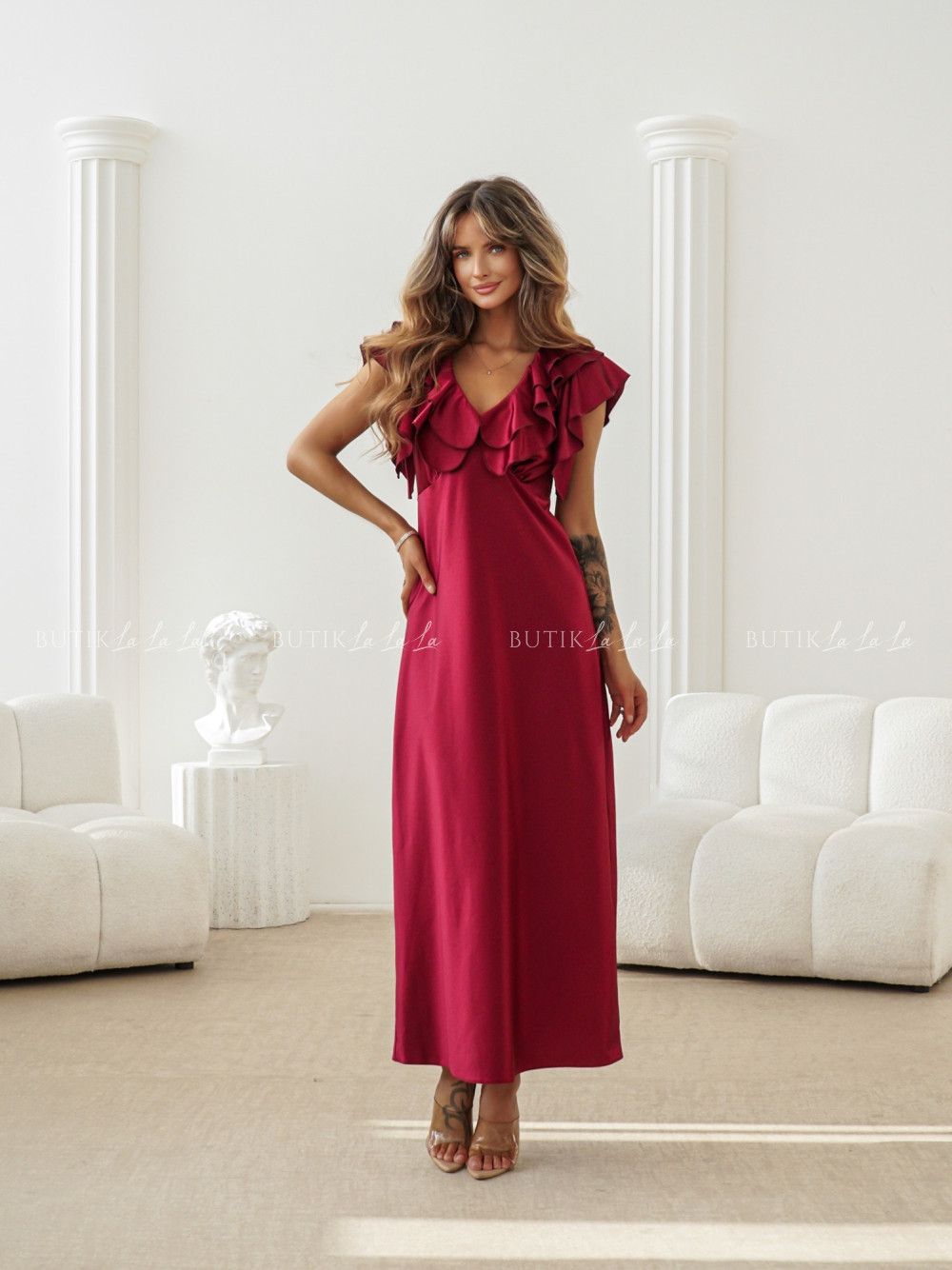 Sukienka Maxi satynowa bordowa Esme