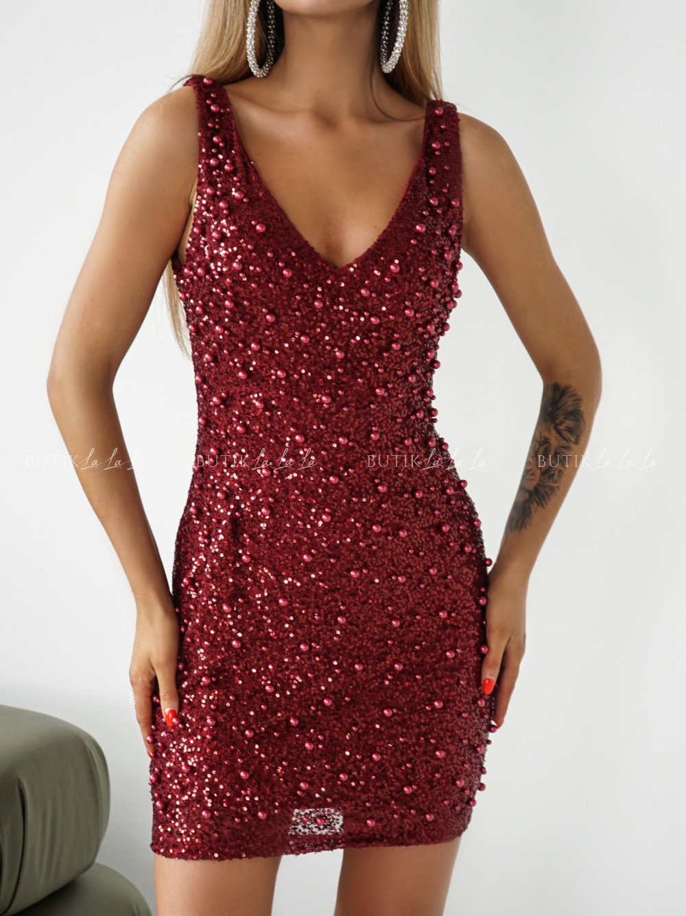 Sukienka cekinowa z koralikami bordowa Oksana