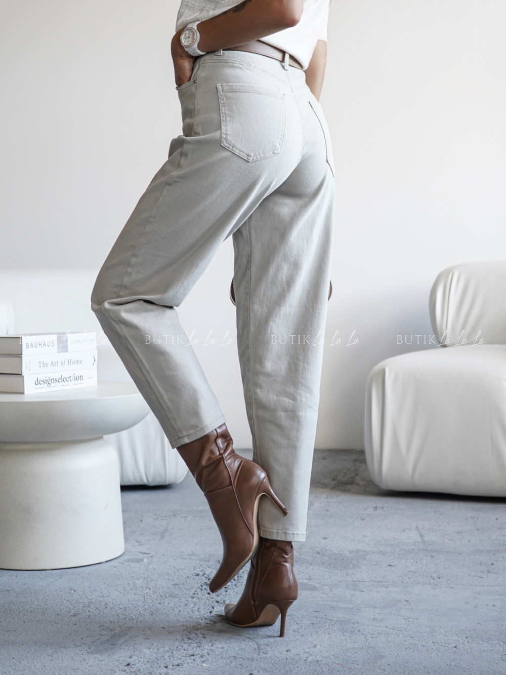 Spodnie jeansowe typu balloon beżowe Gorley