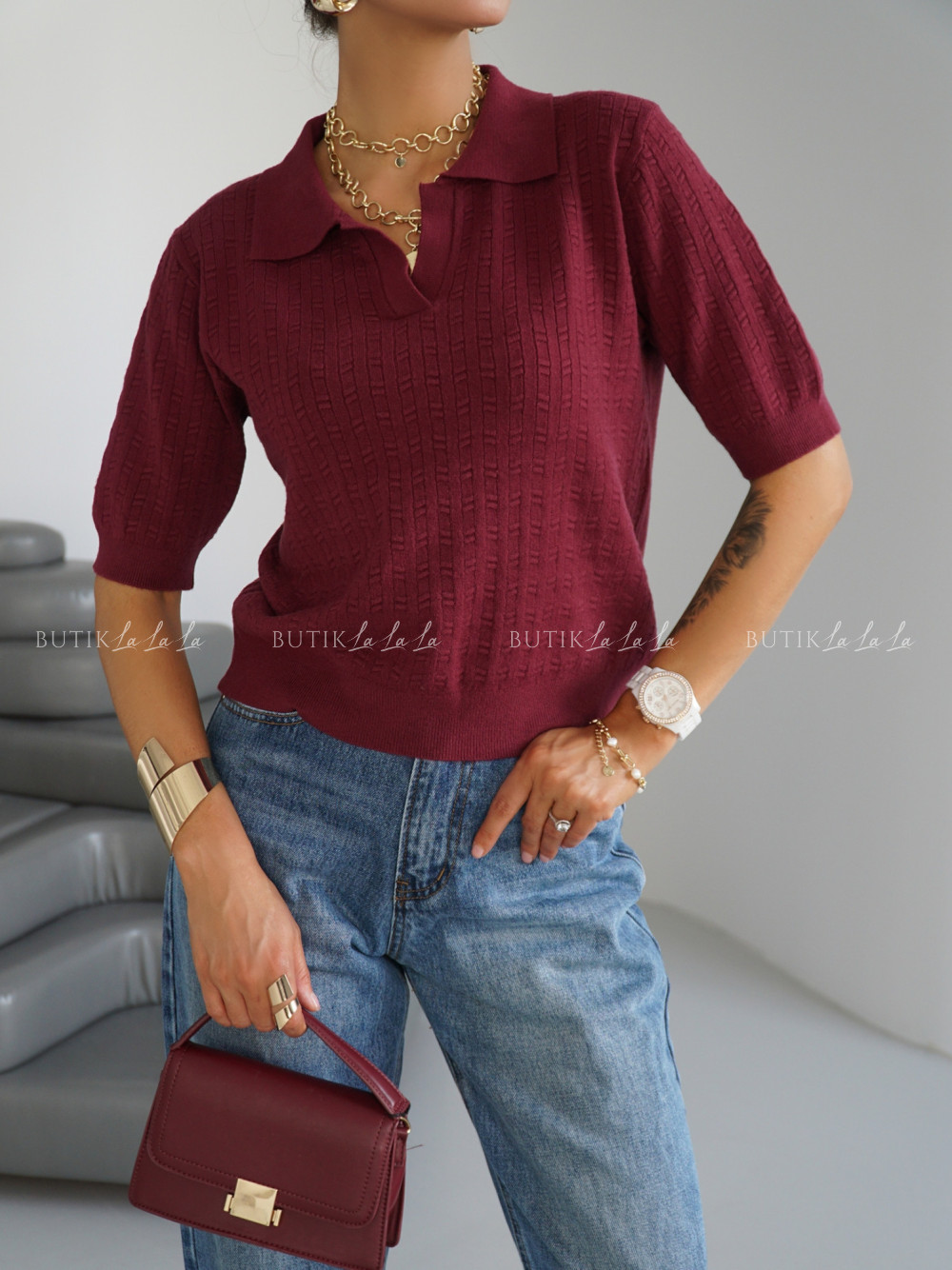 Modelka ma 170 cm wzrostu, prezentuje rozmiar XS/34