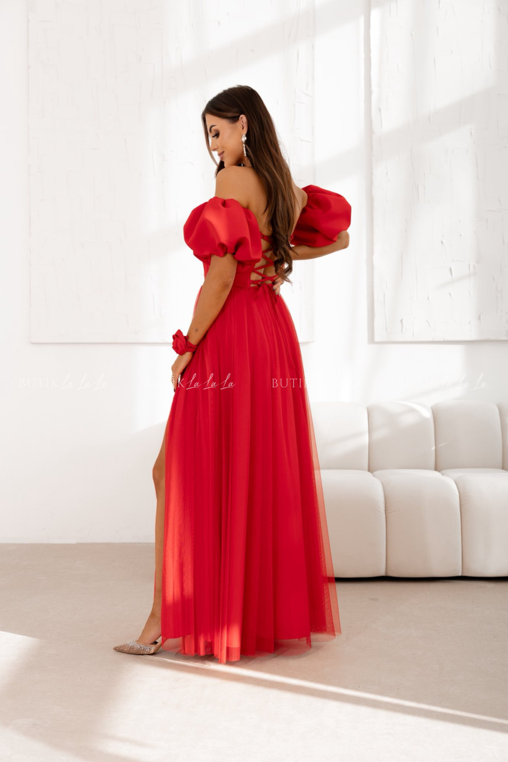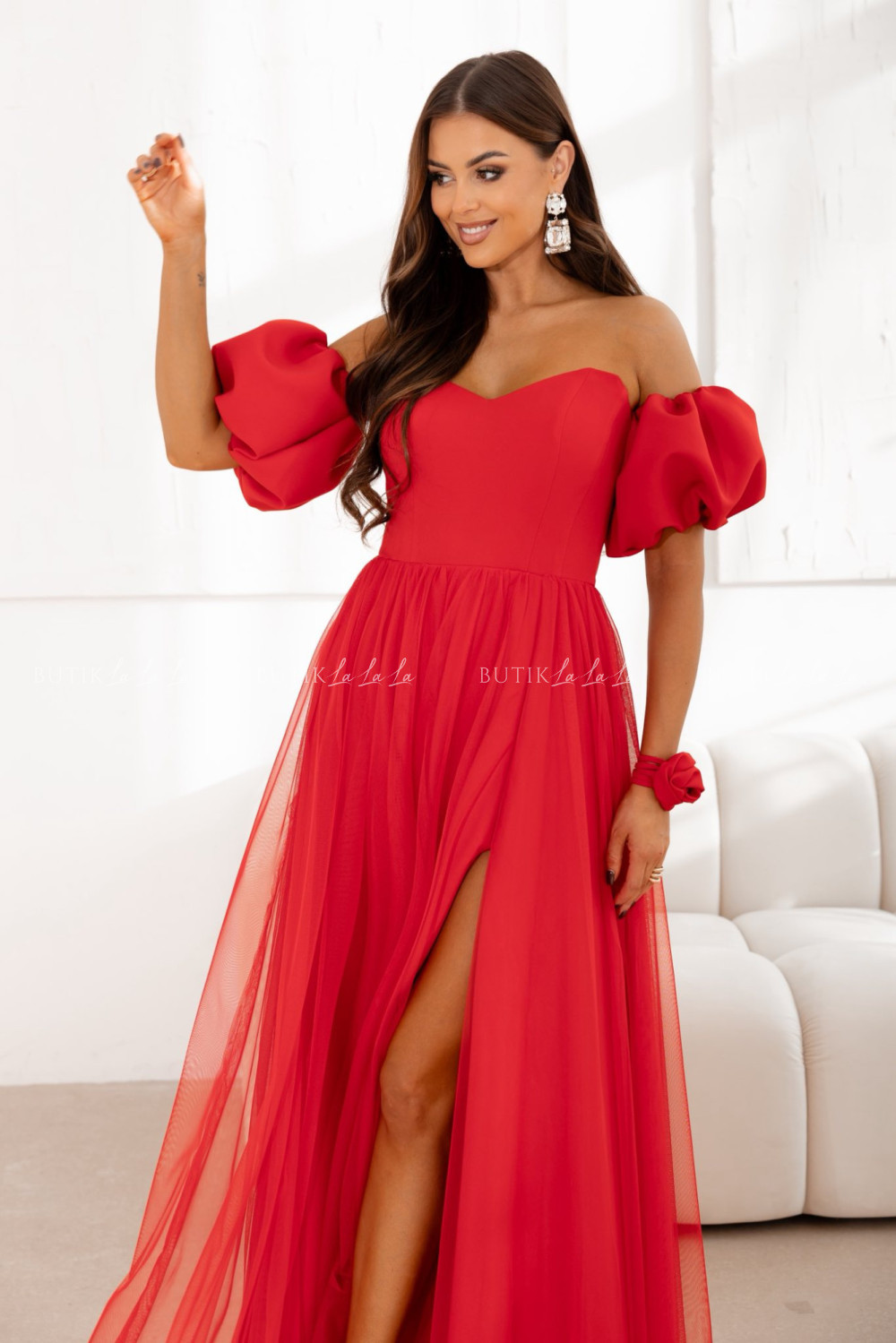 Sukienka maxi z rękawami tiulowa czerwona Bridget