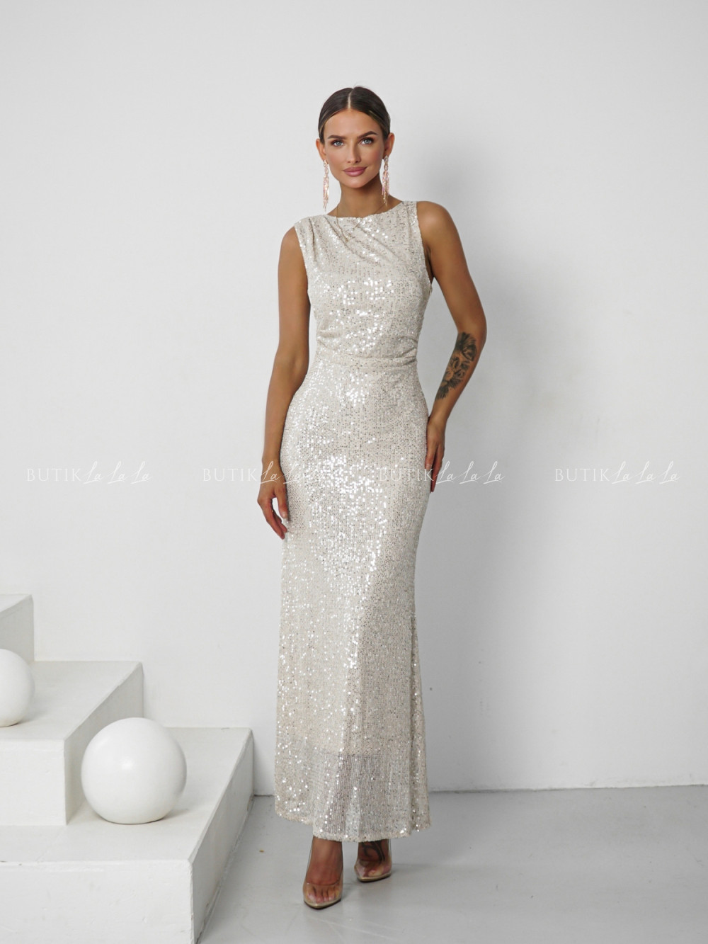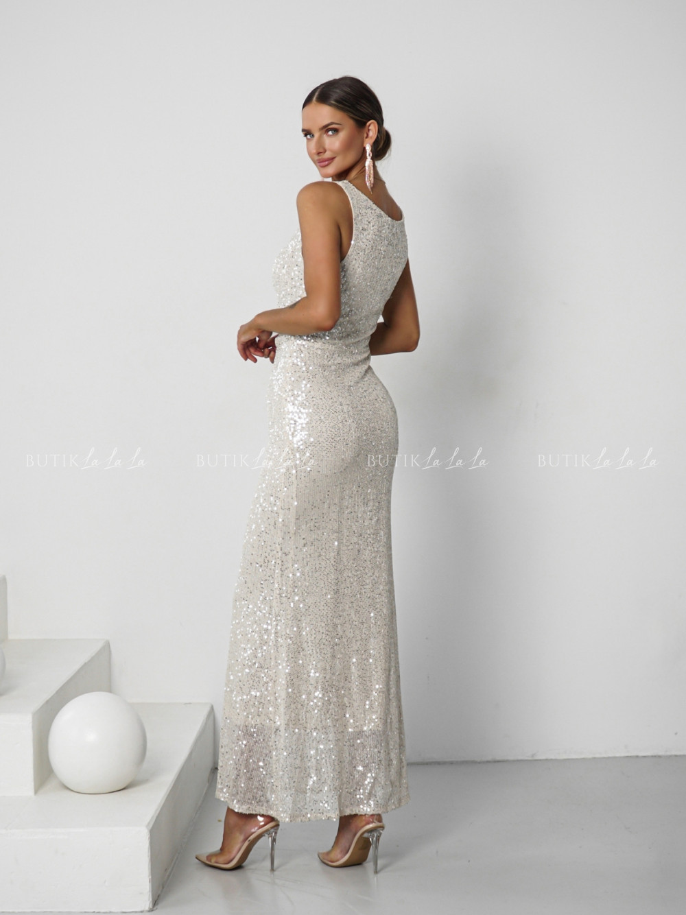 Sukienka maxi cekinowa beżowo srebrna Lanna