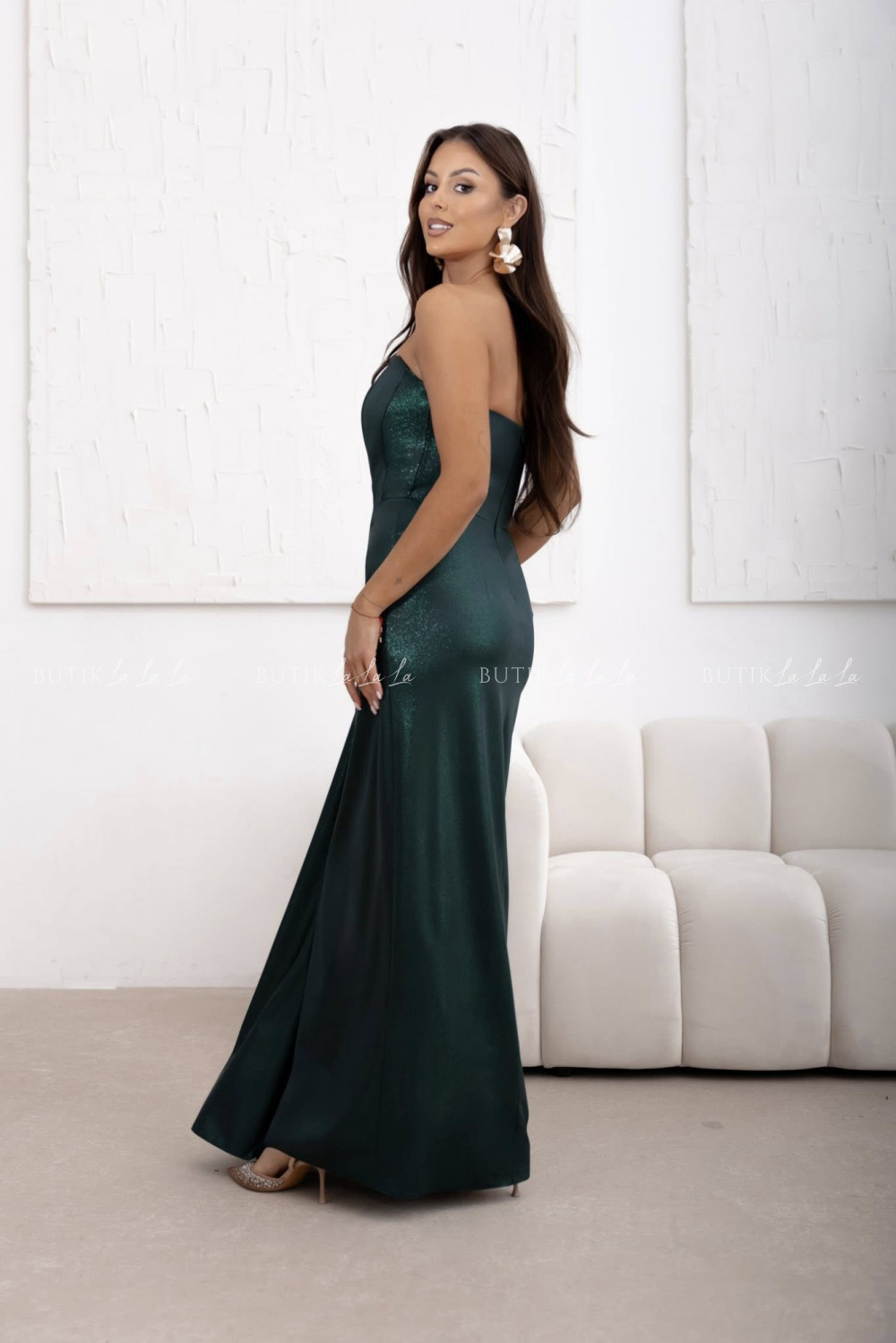 Sukienka maxi połsykująca butelkowa zieleń Madia
