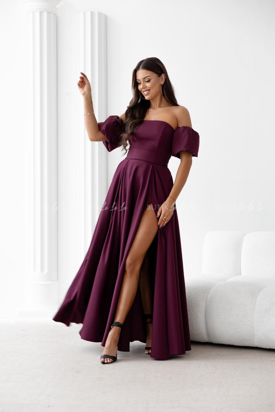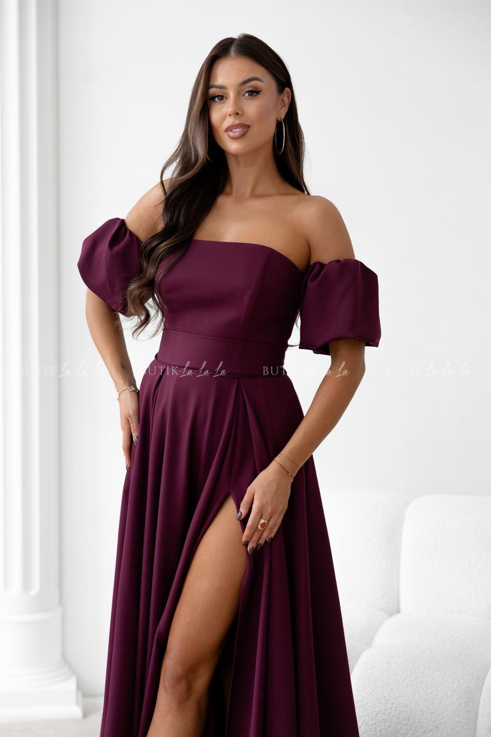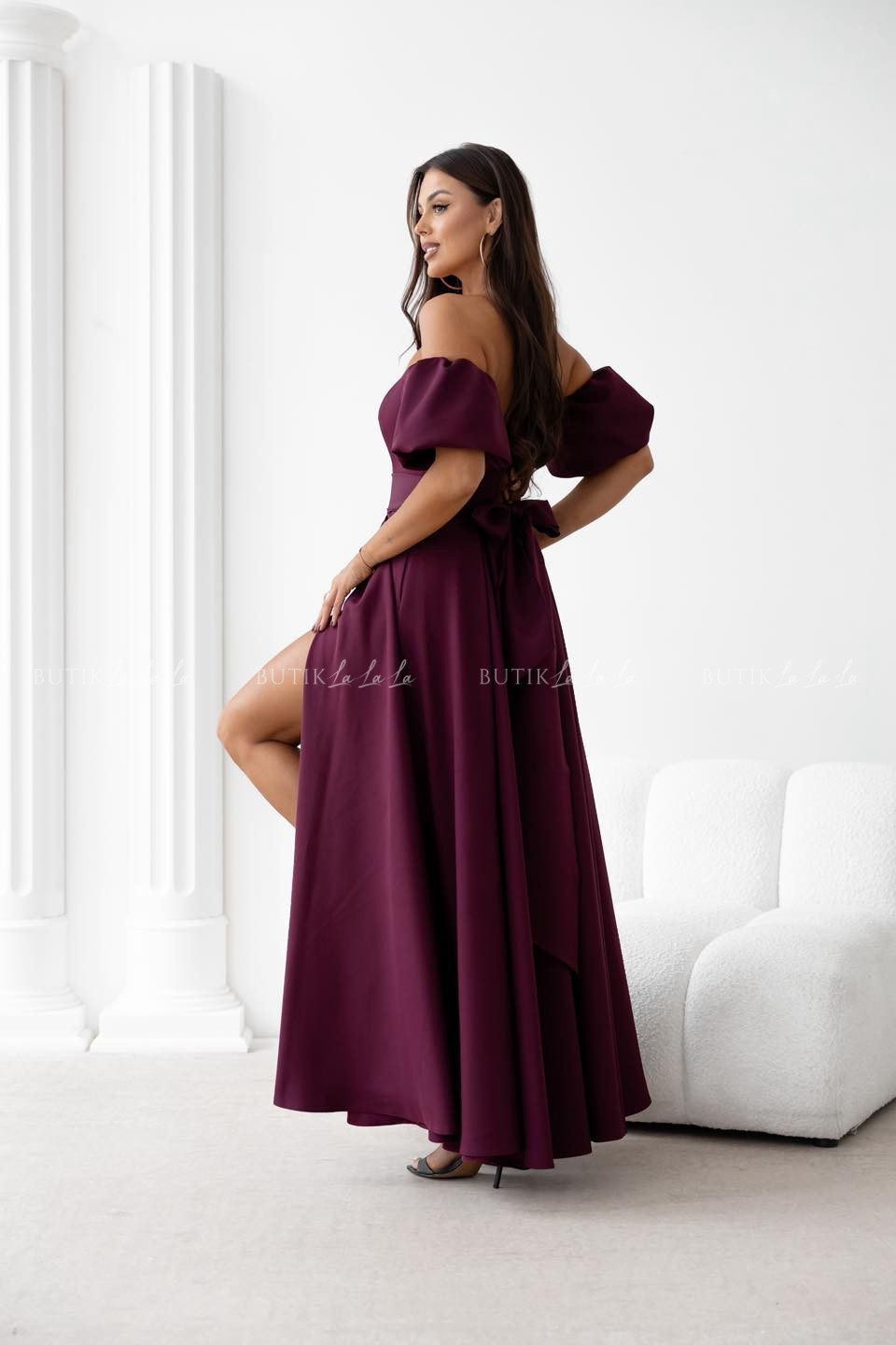 Sukienka maxi burgundowa z szarfą i rękawkami Forest
