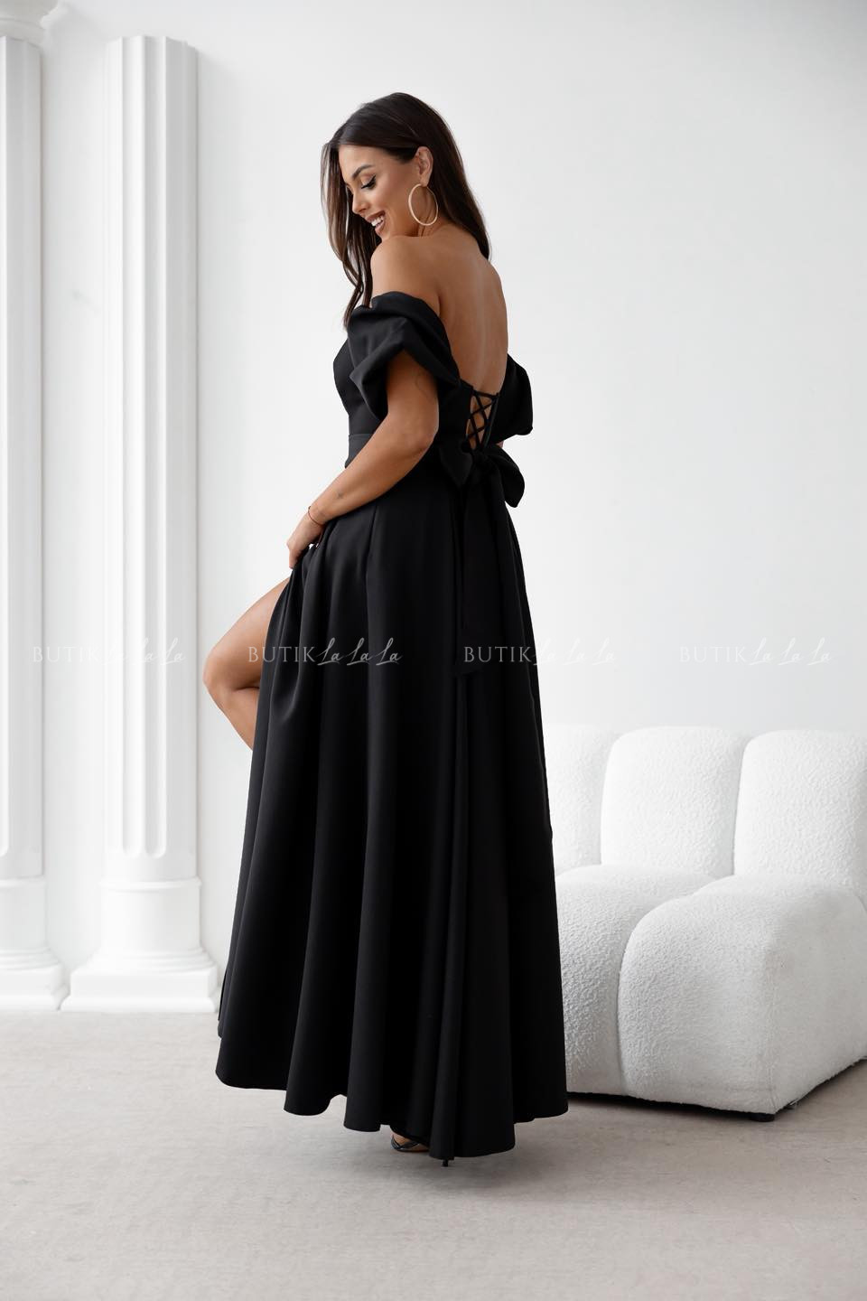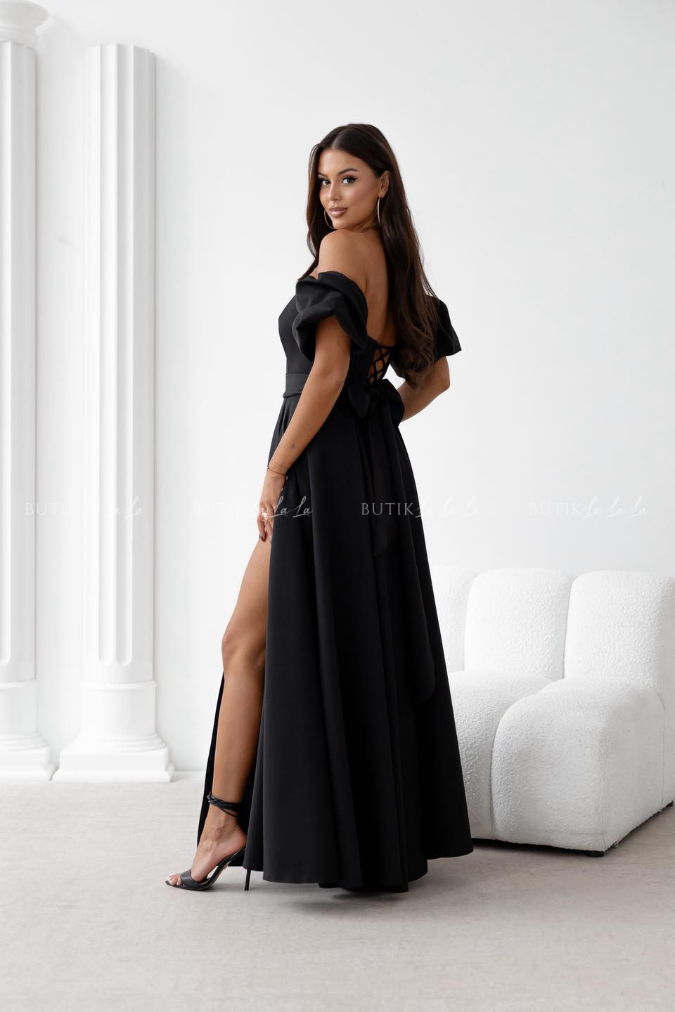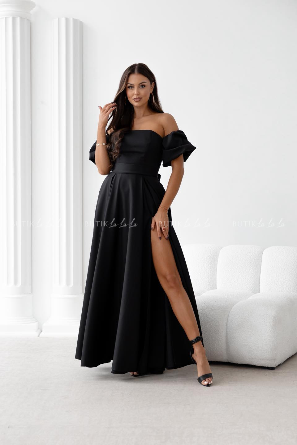 Sukienka maxi czarna z szarfą i rękawkami Forest