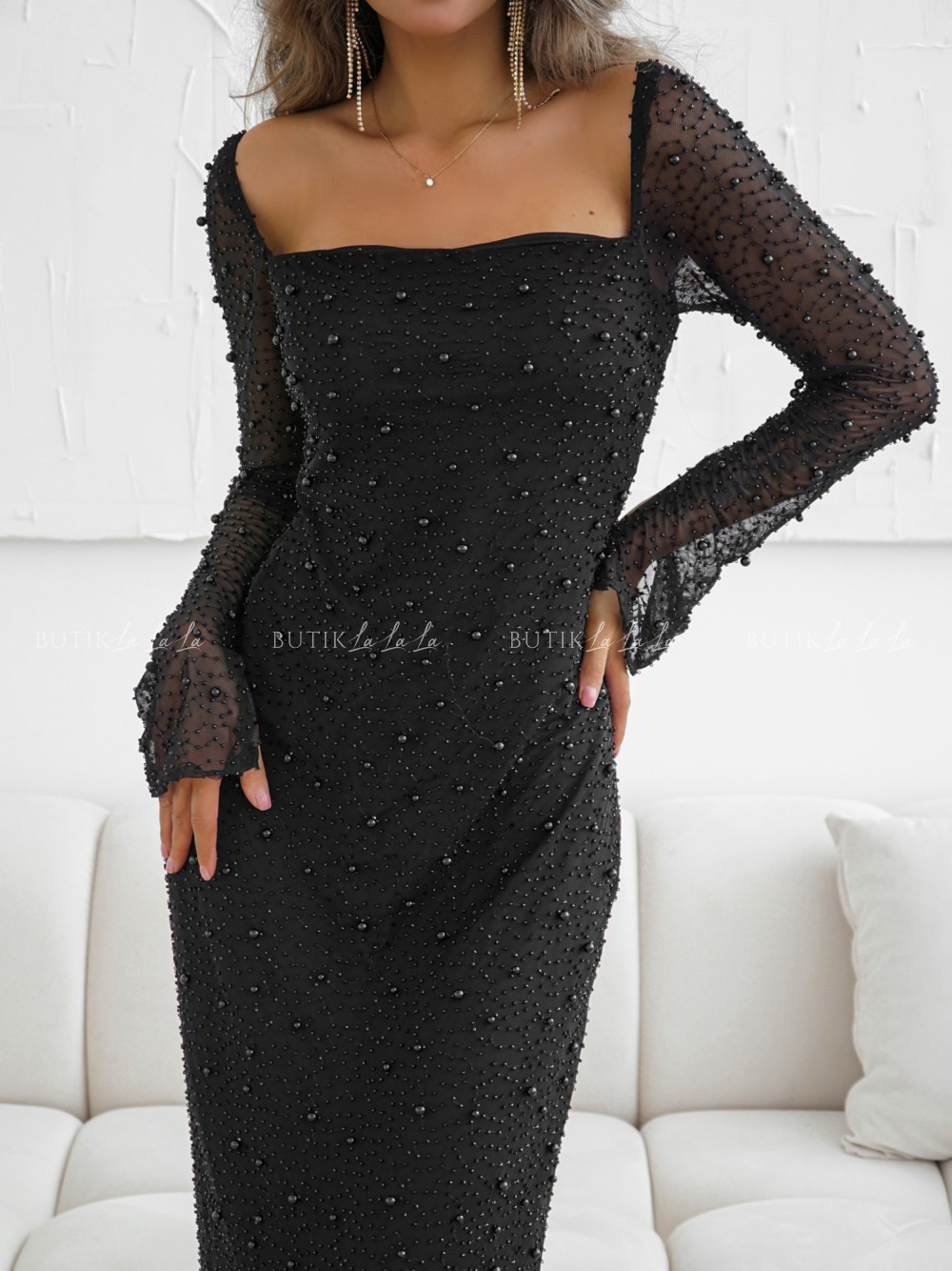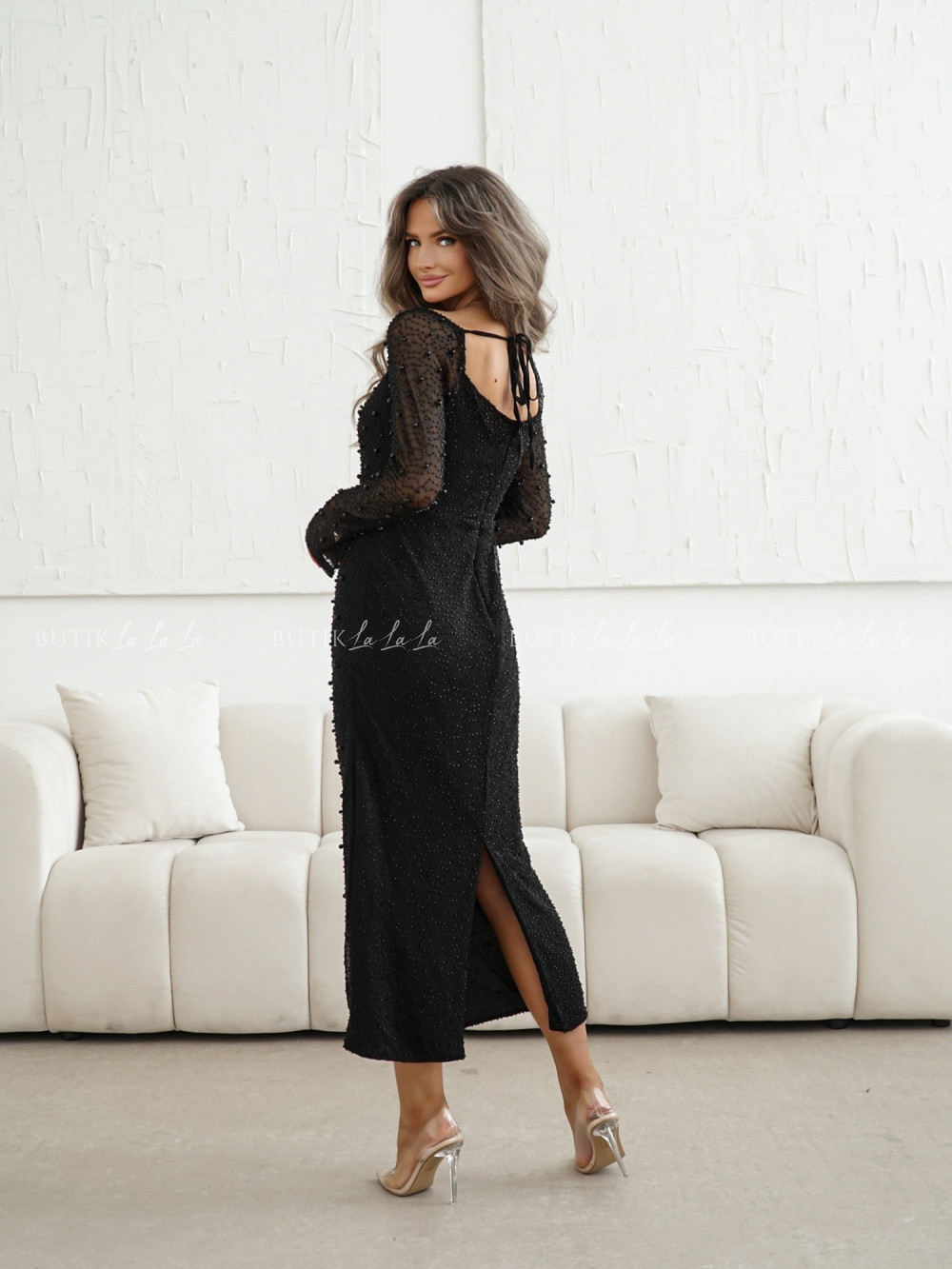 Sukienka maxi czarna z koralikami Britnie
