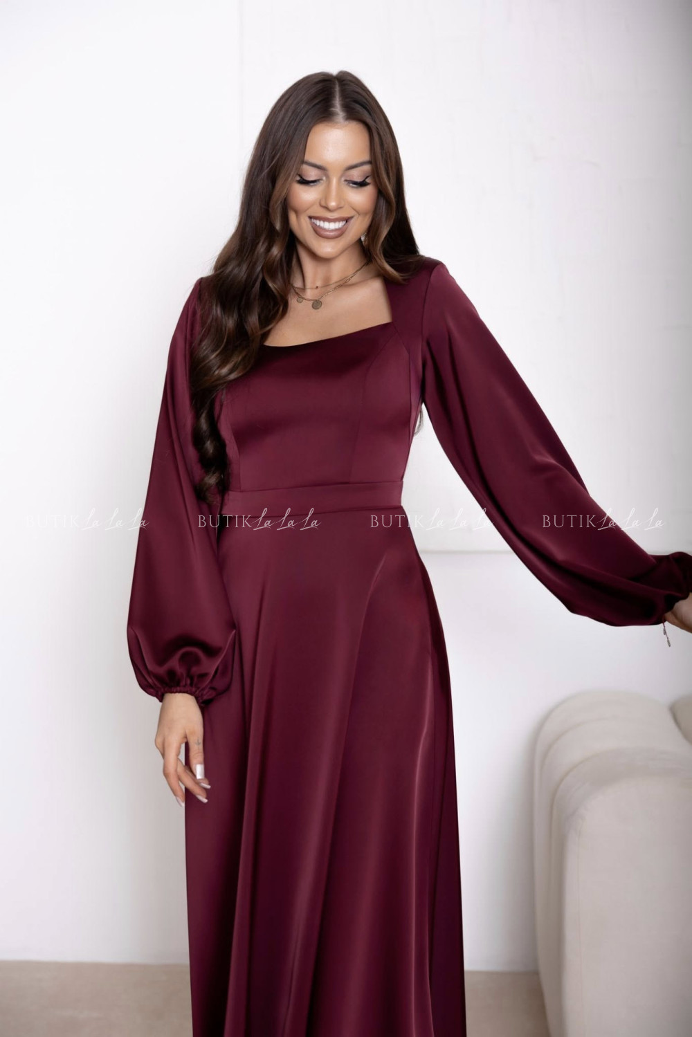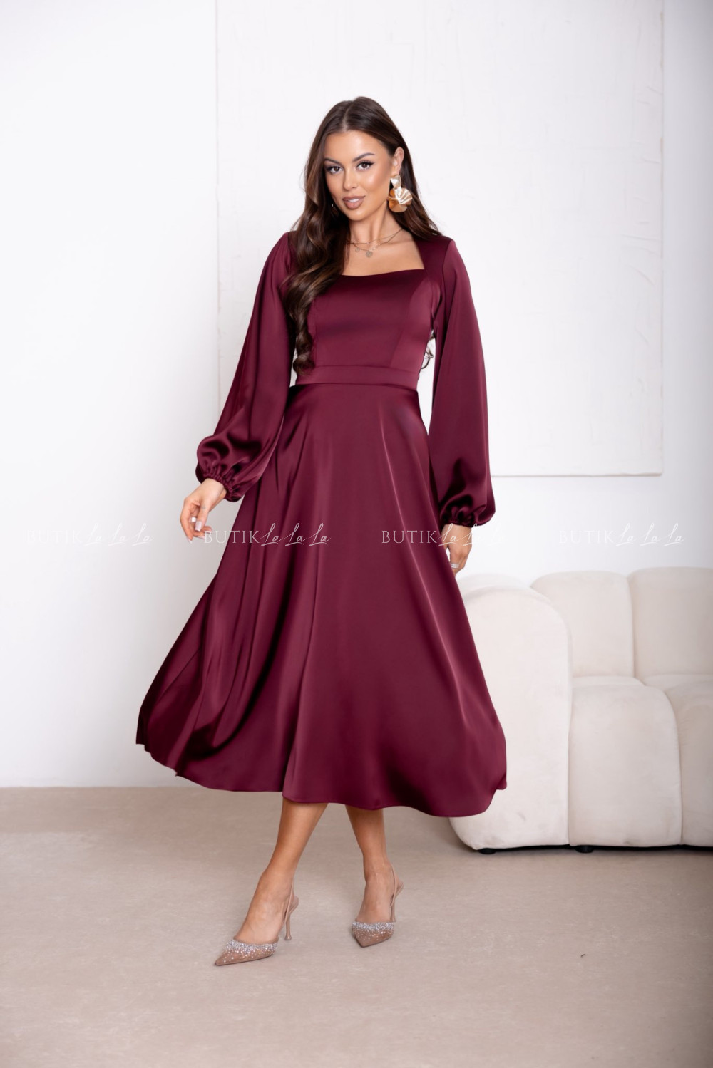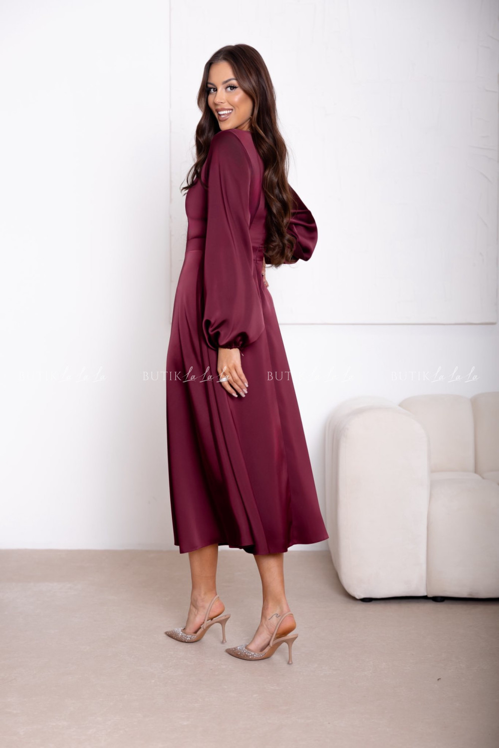Sukienka satynowa bordowa Camelia