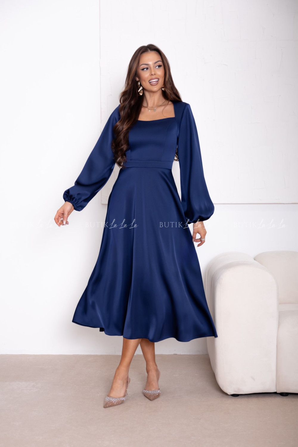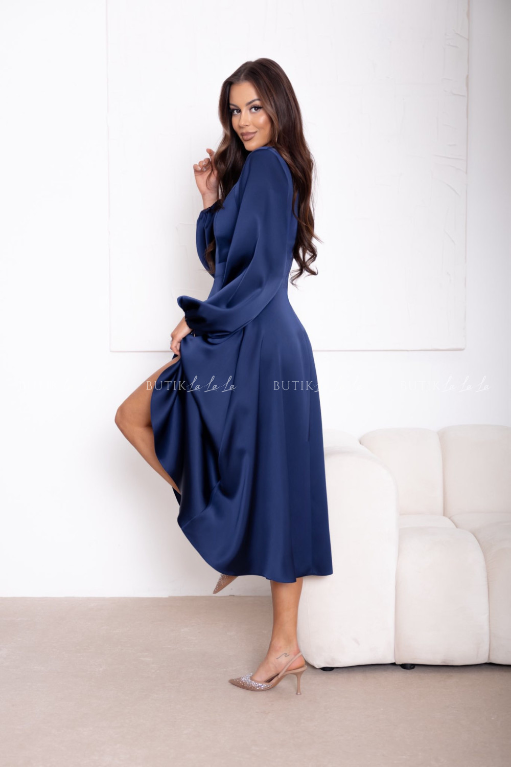 Sukienka satynowa granatowa Camelia